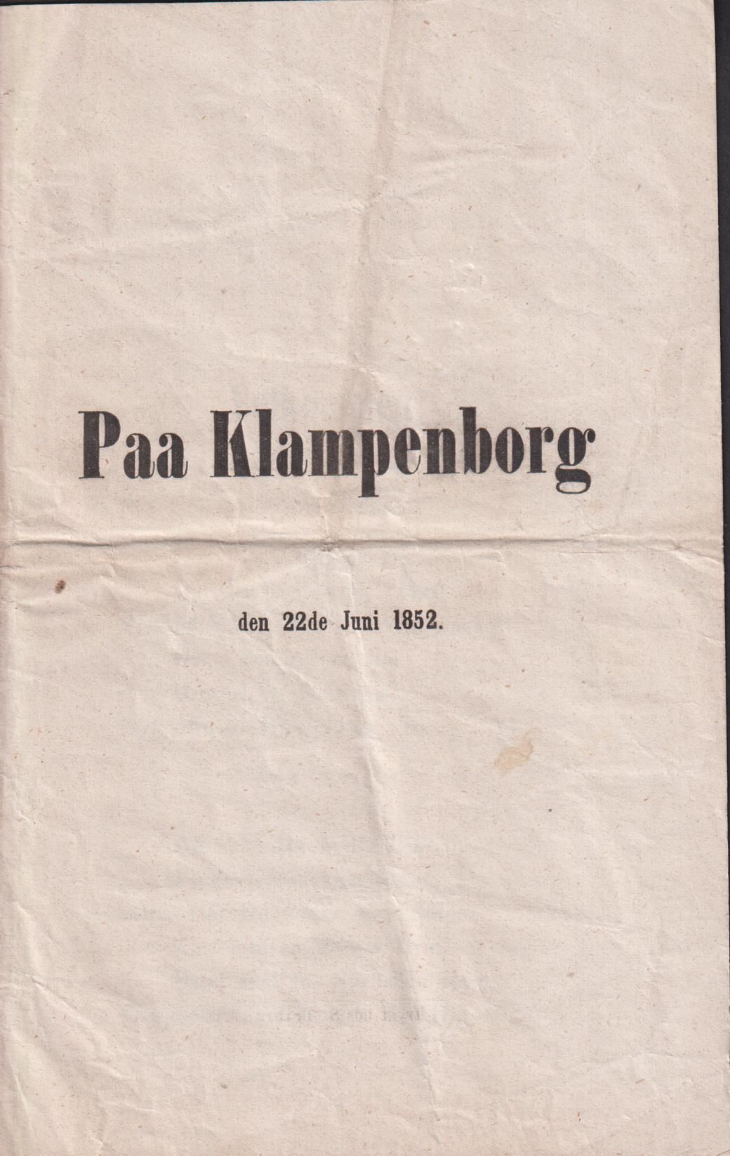[Kjøbenhavn], Trykt hos S. Trier, [1852]. 8:o. (8) s. Limhäftad. Antydan till tvärgående vikmärken.