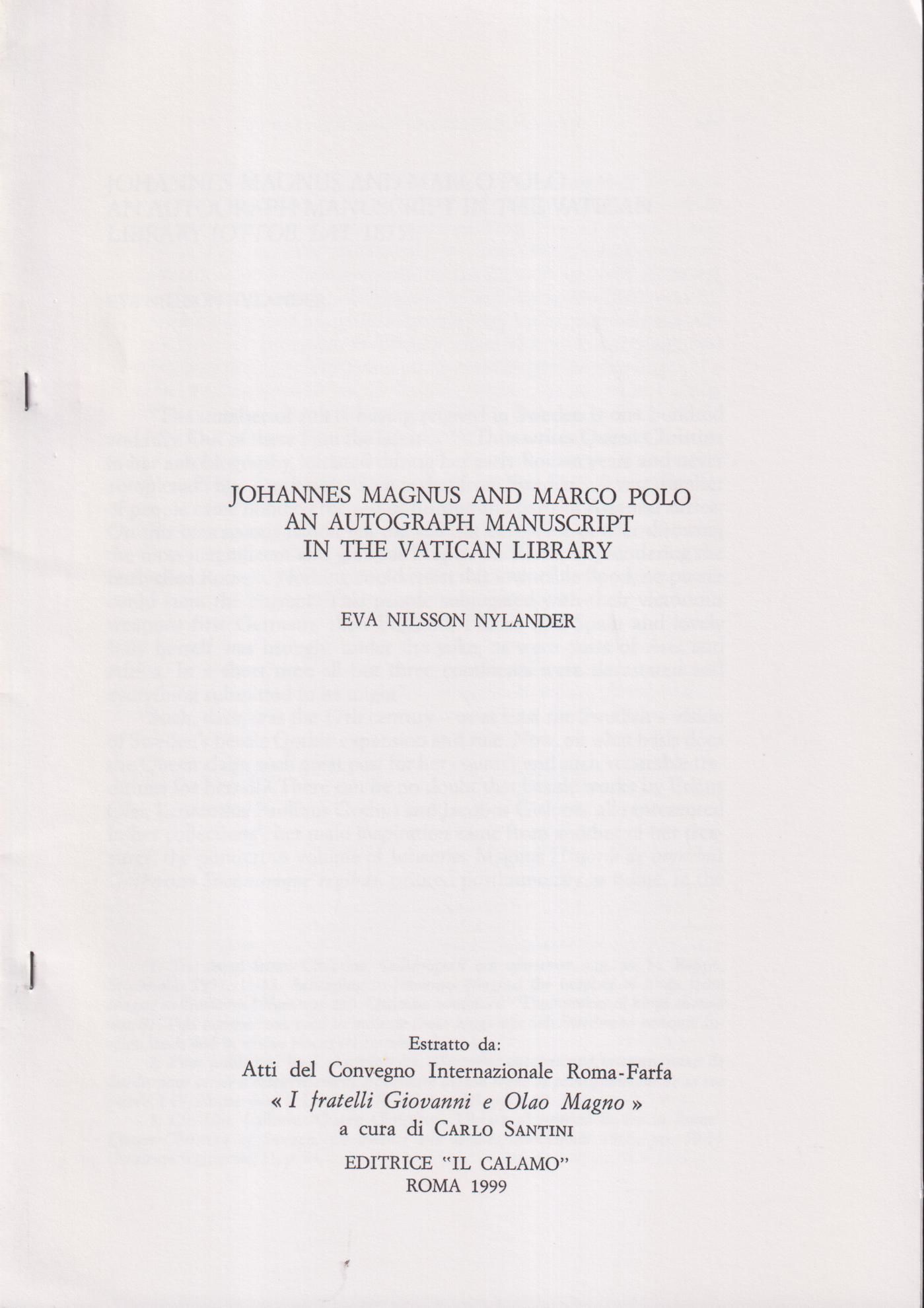 Johannes Magnus and Marco Polo. An autograph manuscript in the Vatican library [= omslagstitel].