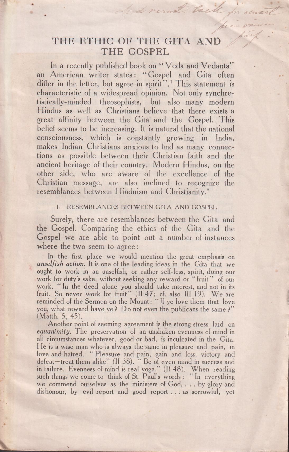 Engelsk text. Sigfrid Estborn (1892-1985), missionär och teolog. Filosofie kandidat i Lund 1918, prästvigd i Stockholm 1922. Han fortsatte senare sina studier i Lund och blev där 1929 teologie licentiat och 1930 teologie doktor. Estborn vigdes 1933 till svenska kyrkans missionär i Syd-Indien, där han blev föreståndare för teologiska högskolan i Madras. Han lade ned ett stort arbete på att utbilda indier till präster inom församlingen.