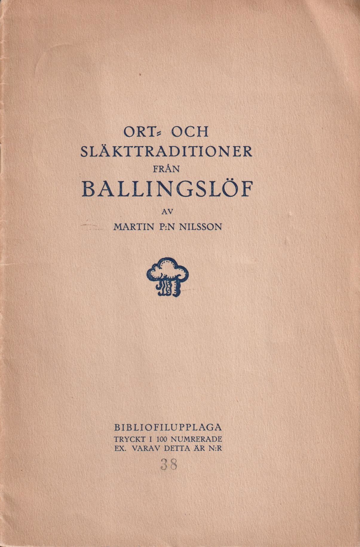 Ort- och släkttraditioner från Ballingslöf av Martin P:n Nilsson.