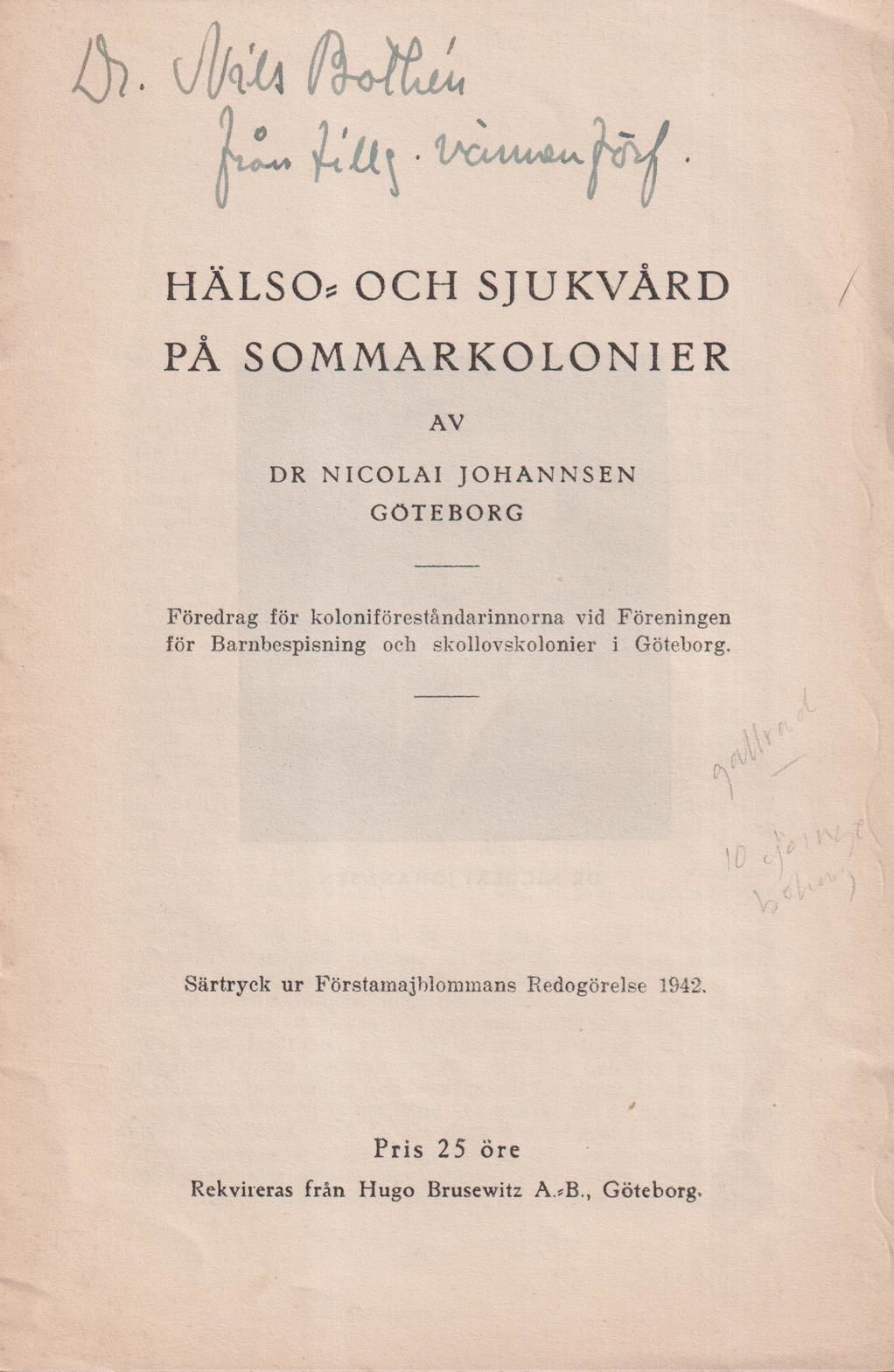 Hälso- och sjukvård på sommarkolonier. Föredrag för koloniföreståndarinnorna vid Föreningen för Barnbespisning och skollovskolonier i Göteborg.
