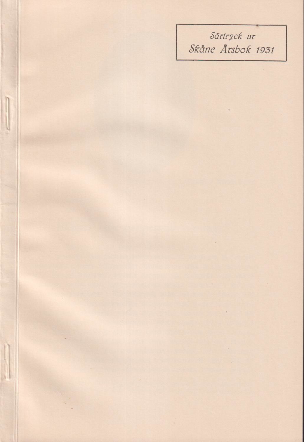 Göteborg, Elanders Boktryckeri Aktiebolag, 1931. 8:o. s. [147]-156. Sparsamt illustrerad. Klammerhäftad med styvt tryckt ljusgult pappersomslag. Välhållet exemplar. Ur förste arkivarie Per Clemenssons bibliotek.