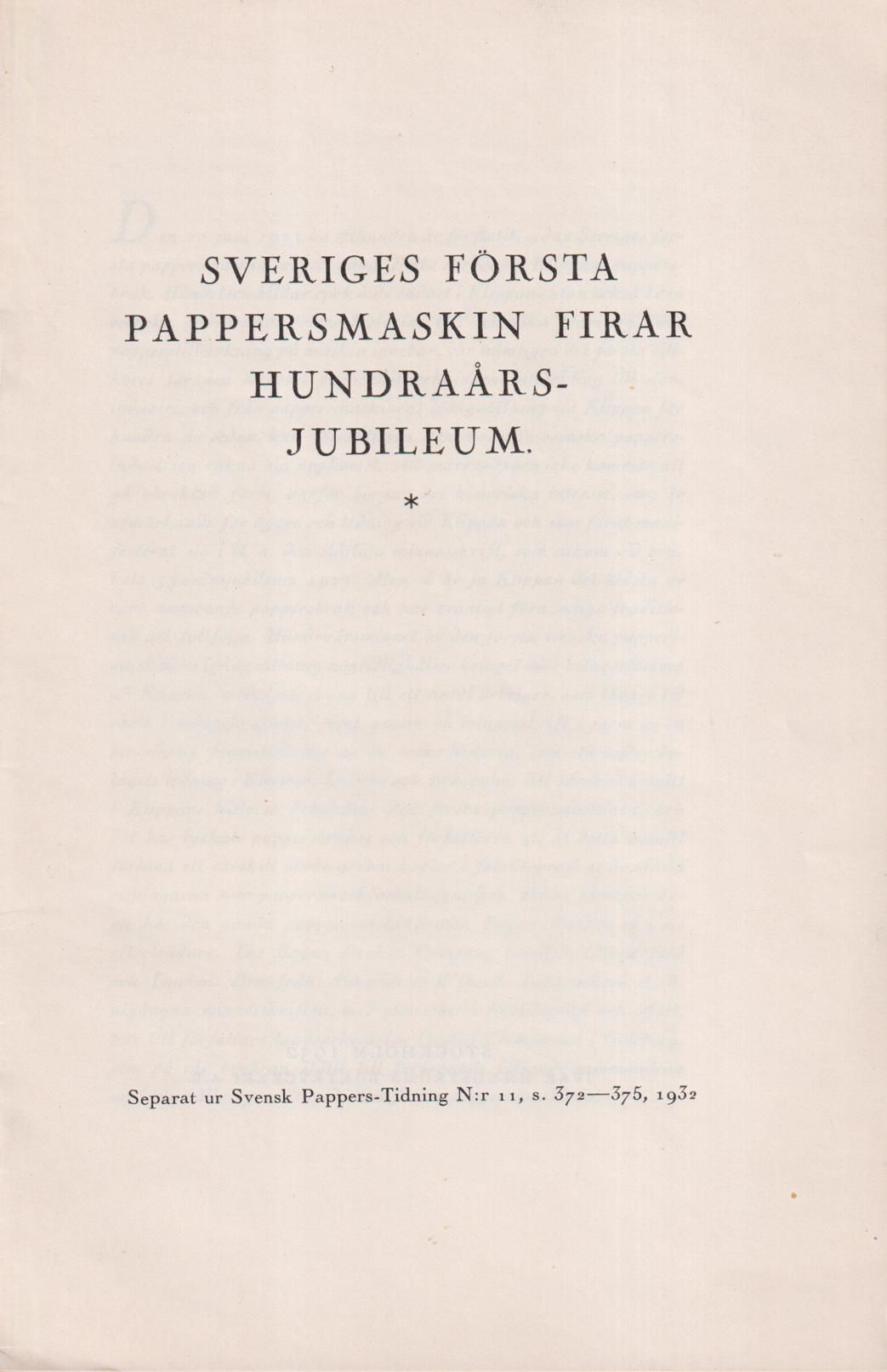 Separat ur ‘Svensk Pappers-Tidning N:r 11, s. 372-375, 1932’.