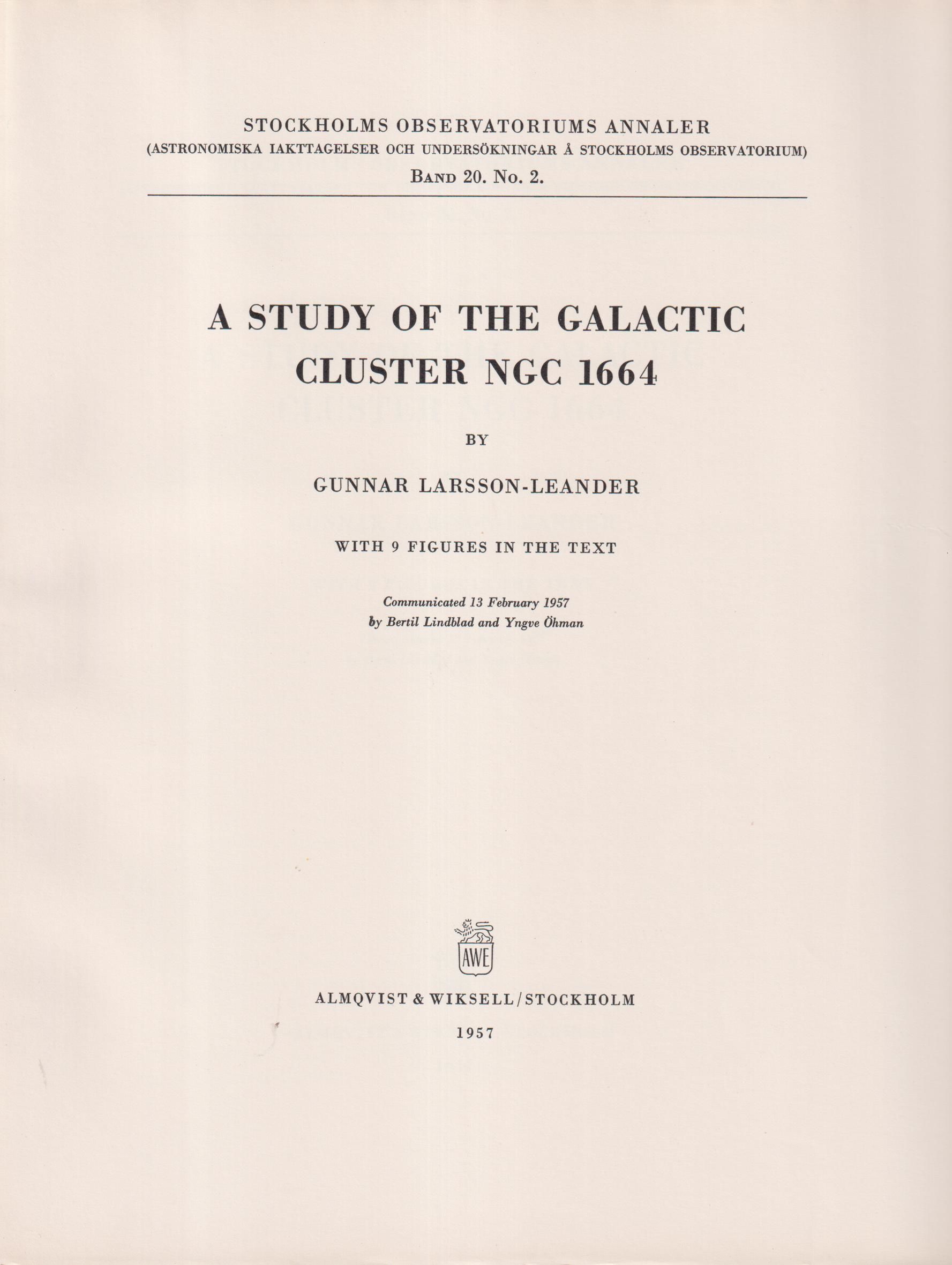 A Study of the Galactic Cluster NGC 1664 by Gunnar Larsson-Leander. With 9 figures in the text. Communicated 13 february 1957 by Bertil Lindblad and Yngve Öhman.