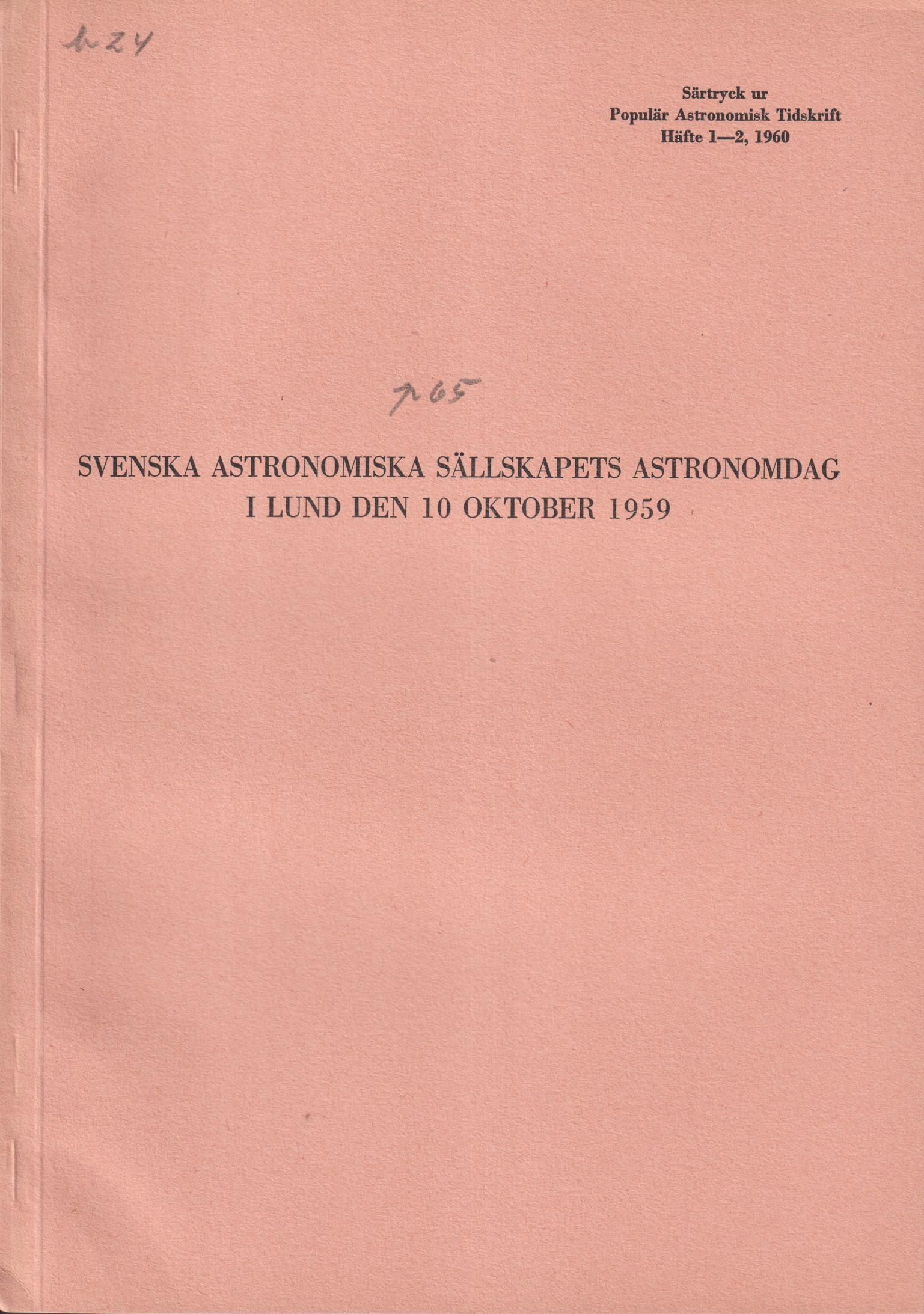 Svenska Astronomiska Sällskapets astronomidag i Lund den 10 oktober 1959 [= rubrik].