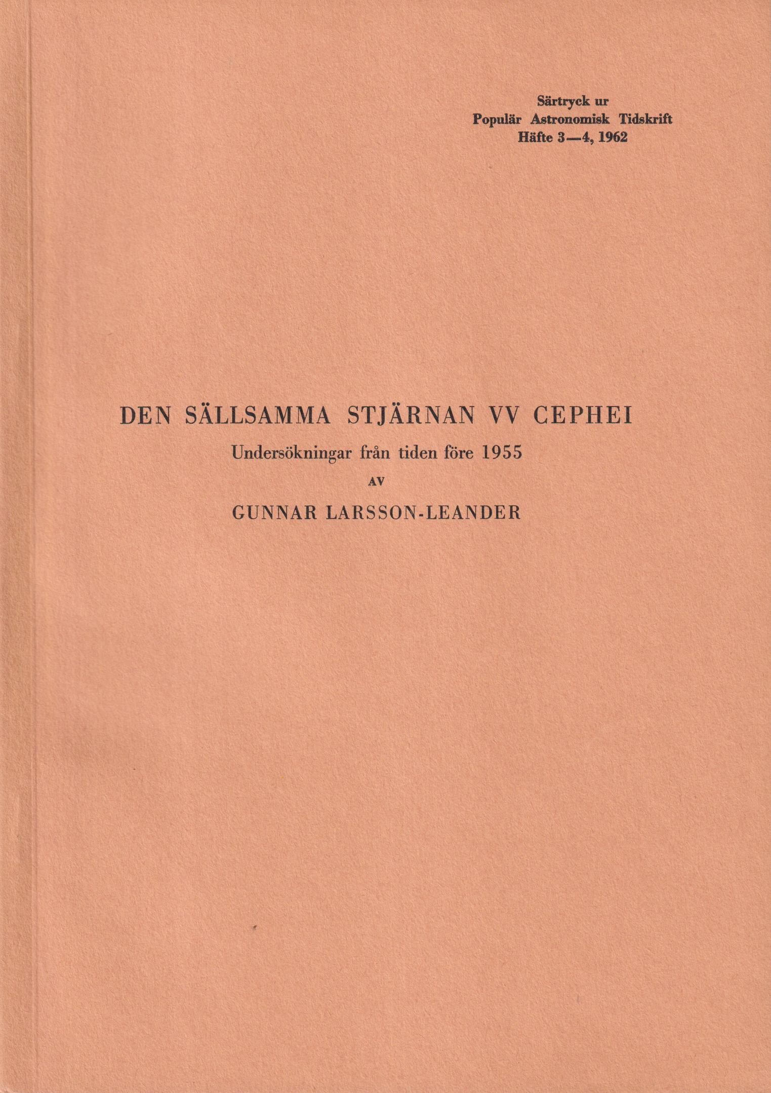 Den sällsamma stjärnan VV Cephei. Undersökningar från tiden före 1955 [= rubrik].