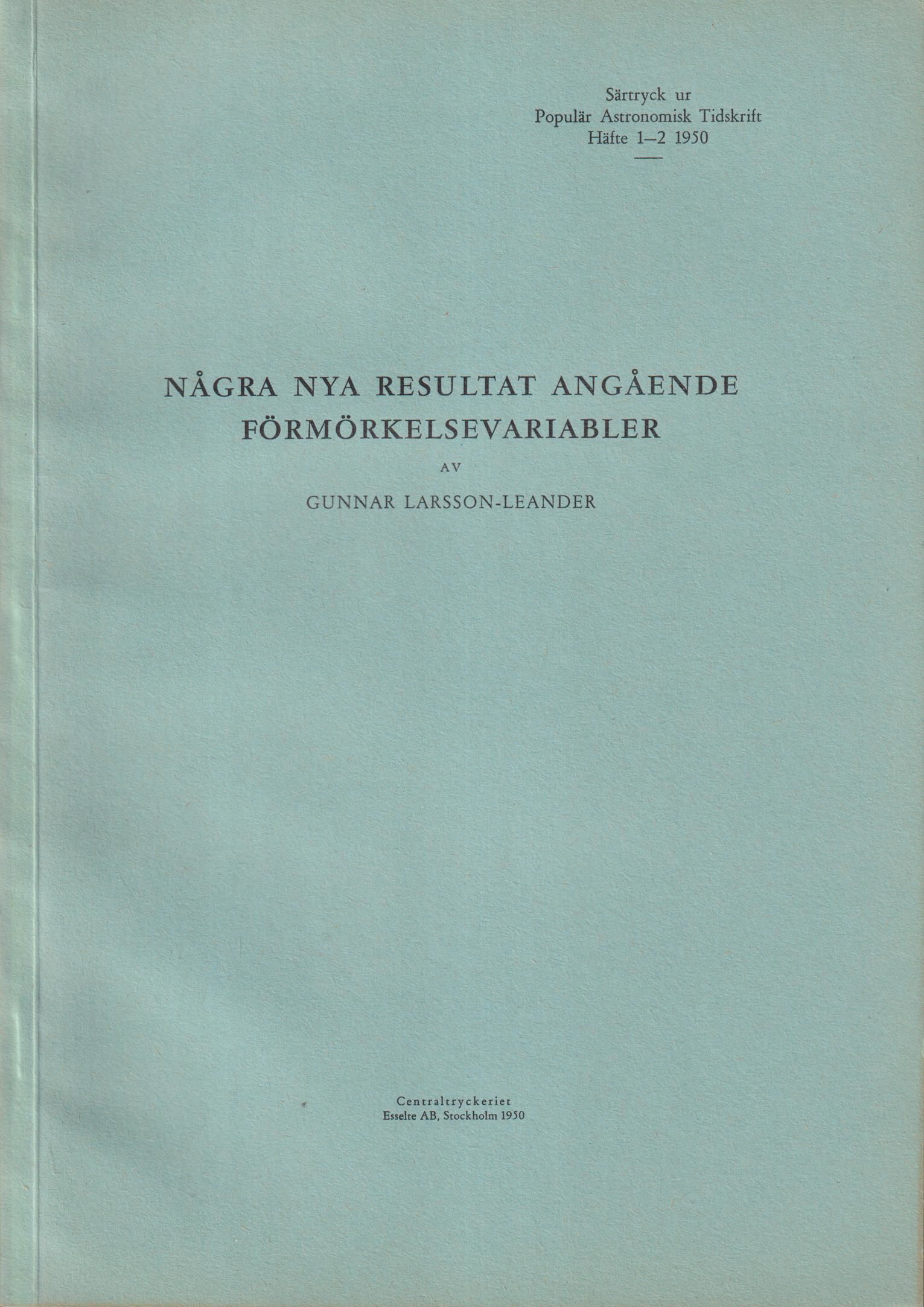 Särtryck ur ‘Populär Astronomisk Tidskrift, Häfte 1-2, 1950’.
