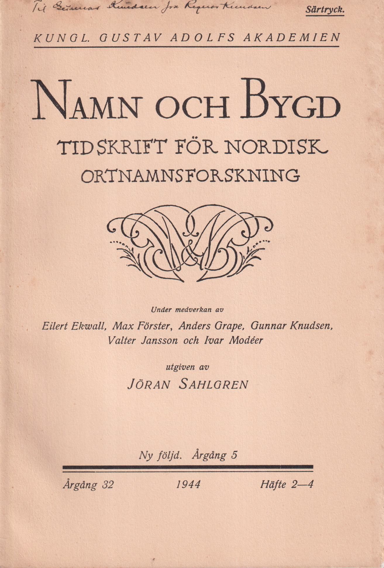 Sid. 60 med marginalnoteringar/-kompletteringar av förf. (?). Särtryck ur 'Namn och Bygd. Ny följd. Årg. 5, 1944. Häfte 2-4'.