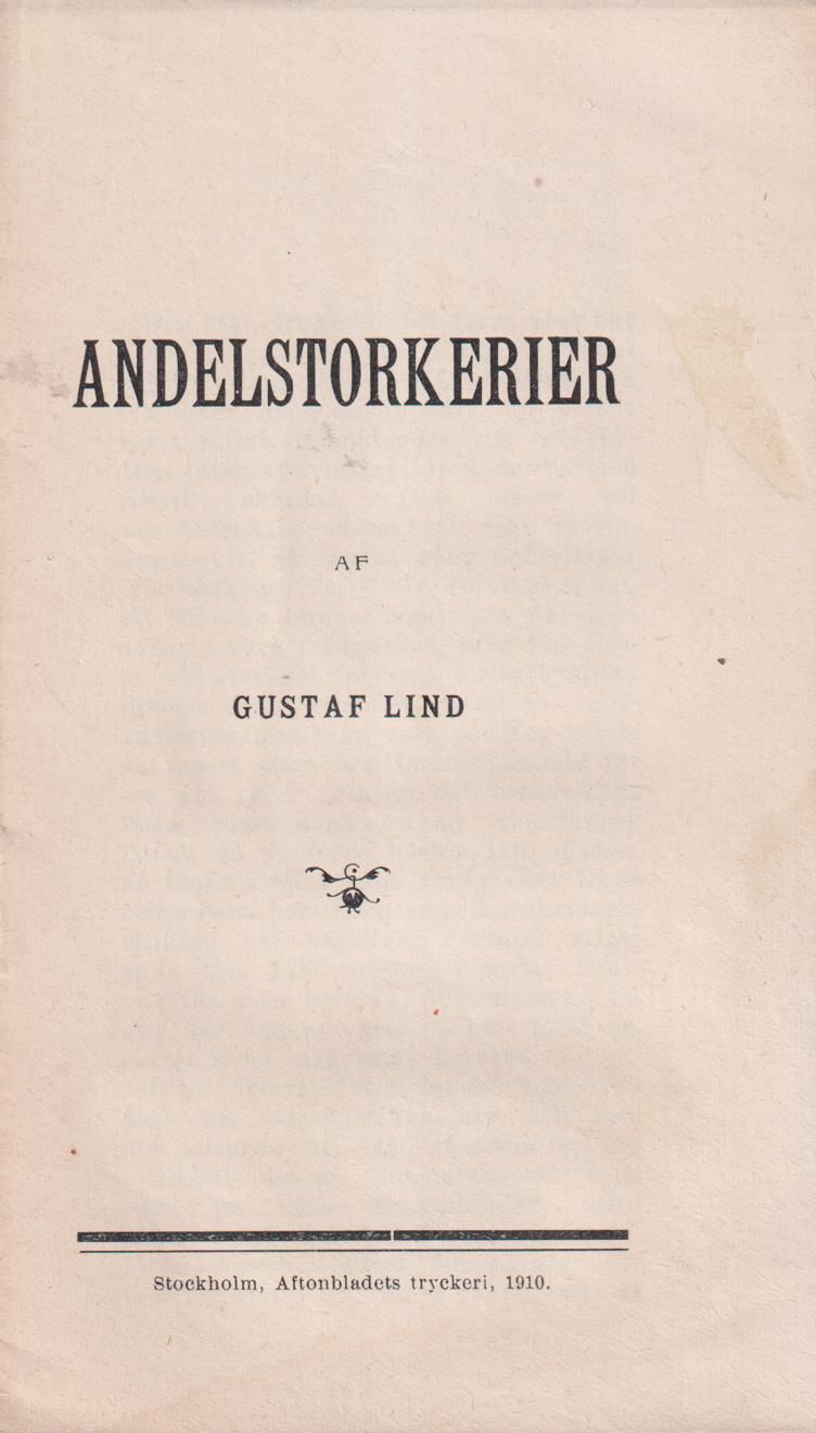 Stockholm, Aftonbladets tryckeri, 1910. 8:o. 10, (1) s. Klammerhäftad. Ouppsprättat exemplar. Titelbladet med liten ljus fläck.