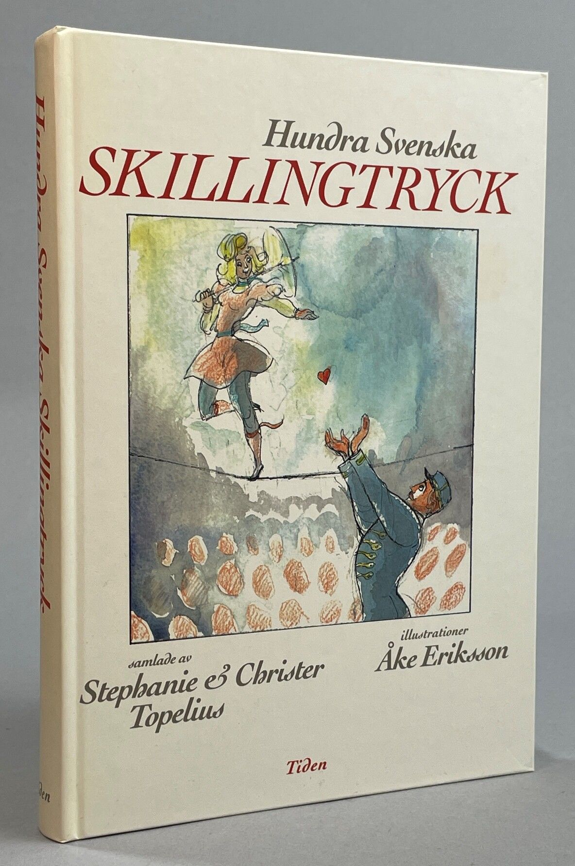 Hundra svenska skillingtryck och kupletter samlade av Stephanie och Christer Topelius. Illustrationer Åke Eriksson. Musikalisk granskning Michael Augustson. [Utg. av] Tidens förlag.