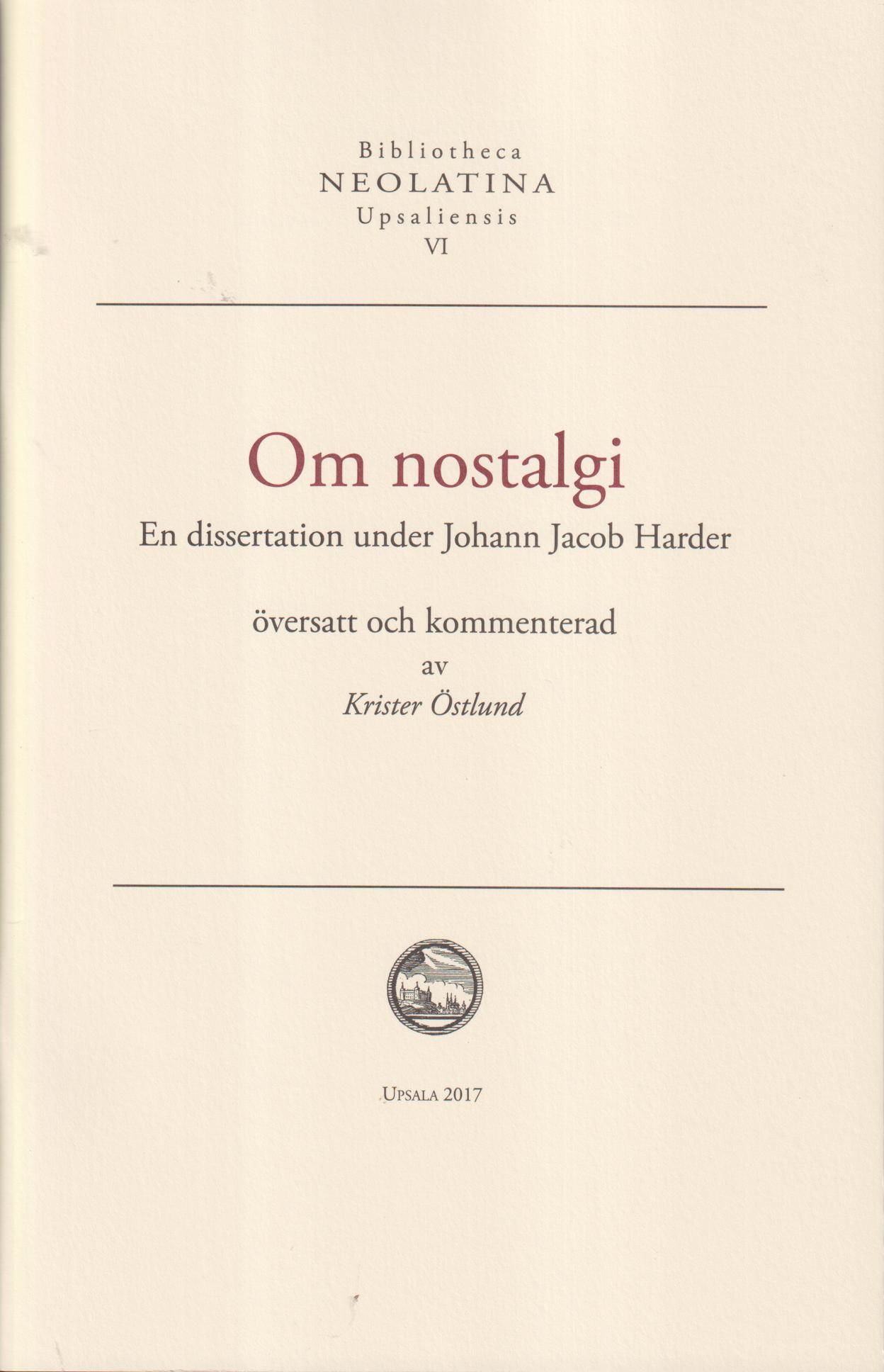 Om nostalgi. En dissertation under Johann Jacob Harder, översatt och kommenterat av Krister Östlund.