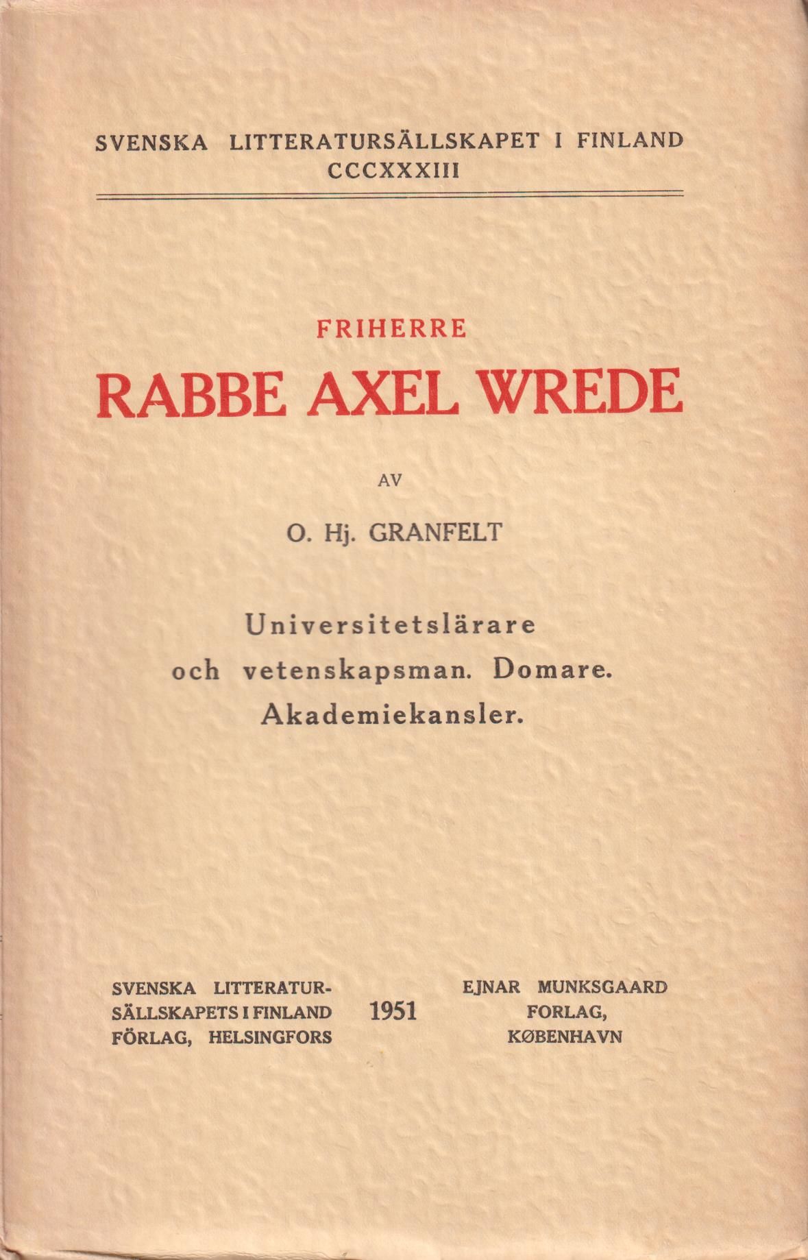 [Wrede, Rabbe Axel (1851-1938)] Granfelt, O. Hj. (1874-1957).