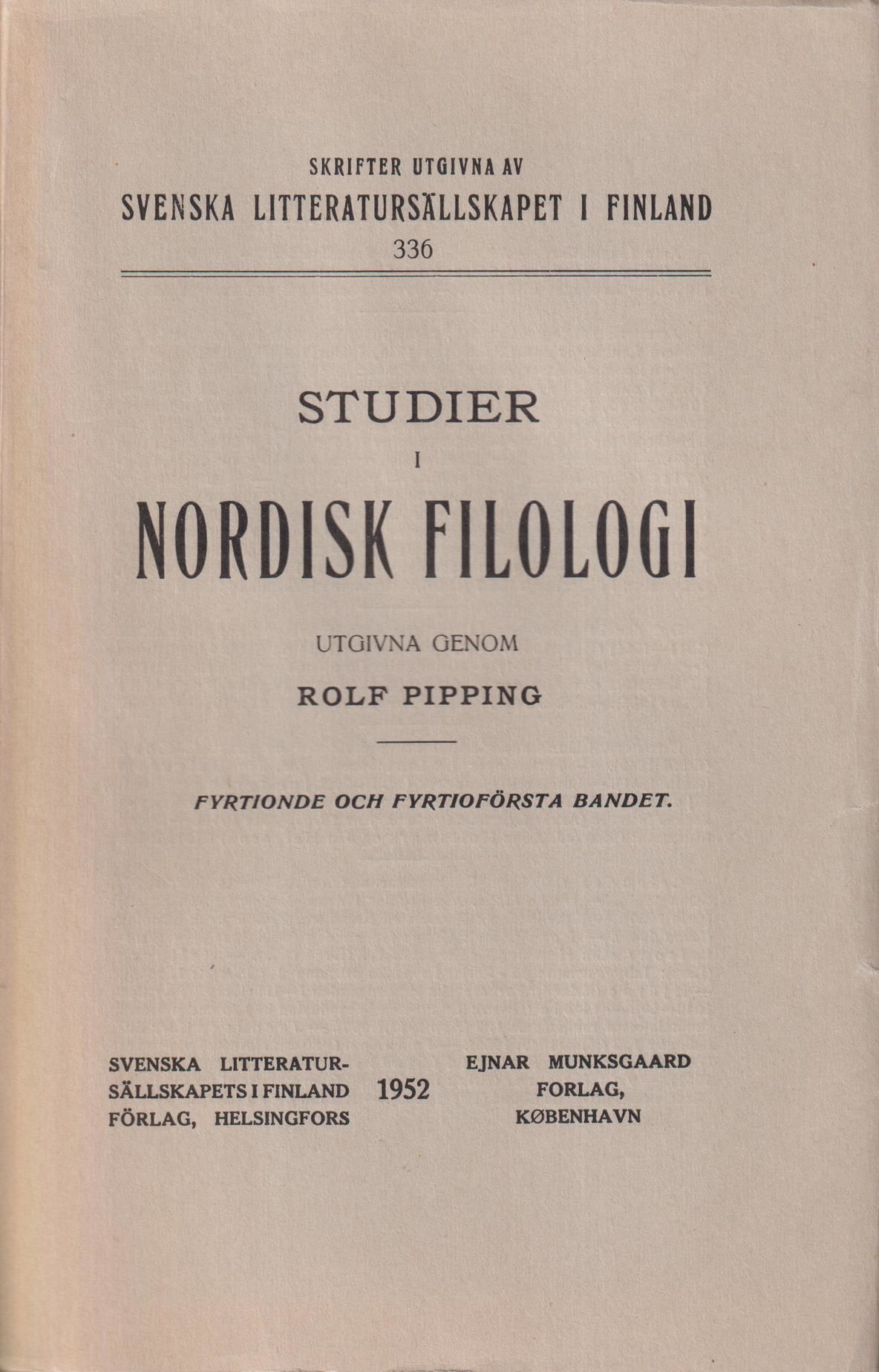 Studier i nordisk filologi. Fyrtionde och fyrtioförsta bandet.