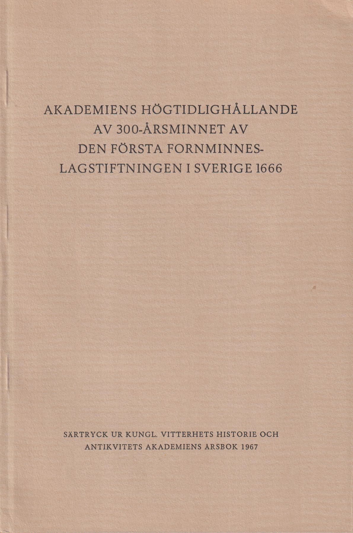 Akademiens högtidlighållande av 300-årsminnet av den första fornminneslagstiftningen i Sverige 1666 [= rubrik].