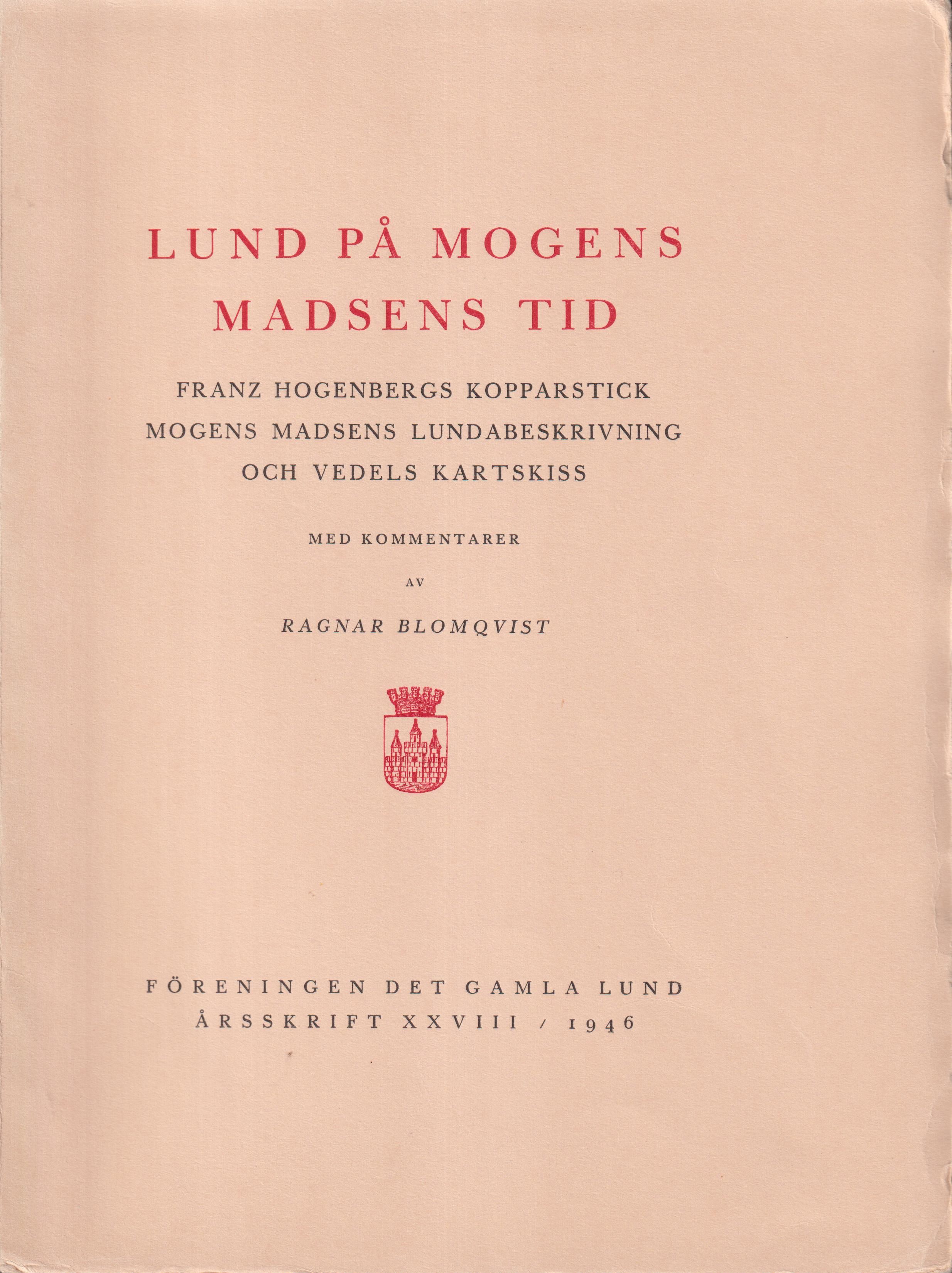 Skrifter utgivna av Föreningen Det gamla Lund 28 (1946). Innehåll: Franz Hogenbergs kopparstick; Mogens Madsens lundabeskrivning av år 1587 (Om Lund; Kommentarer); Vedels kartskiss.
