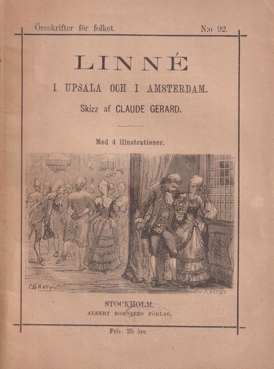 Linné i Upsala och Amsterdam. Skizz af Claude Gerard. Med 4 illustrationer. [Utg. av] Albert Bonniers Förlag.
