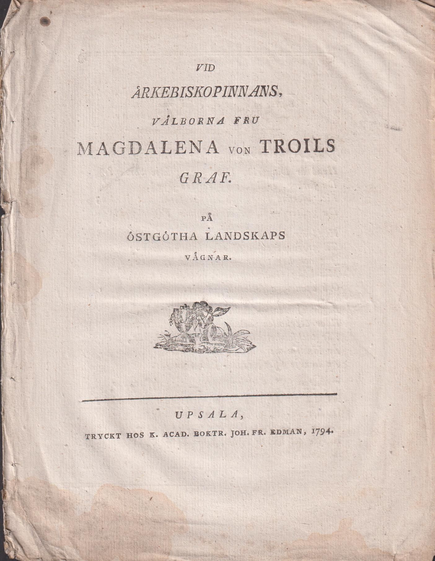 Vid ärkebiskopinnans, välborna fru Magdalena von Troils graf. På Östgötha landskaps vägnar.