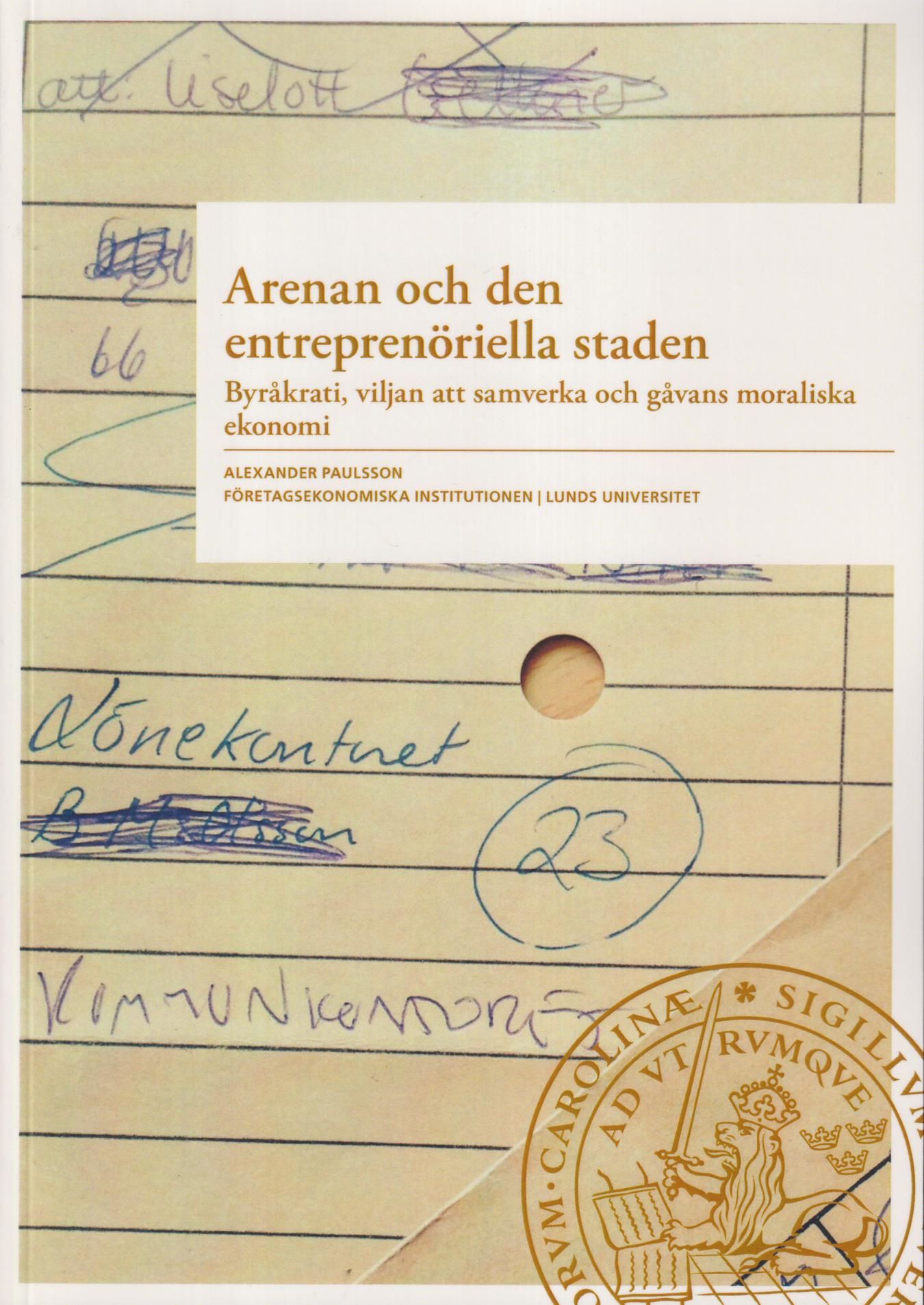 Arenan och den entreprenöriella staden. Byråkrati, viljan att samverka och gåvans moraliska ekonomi. [Utg. av] Företagsekonomiska institutionen.
