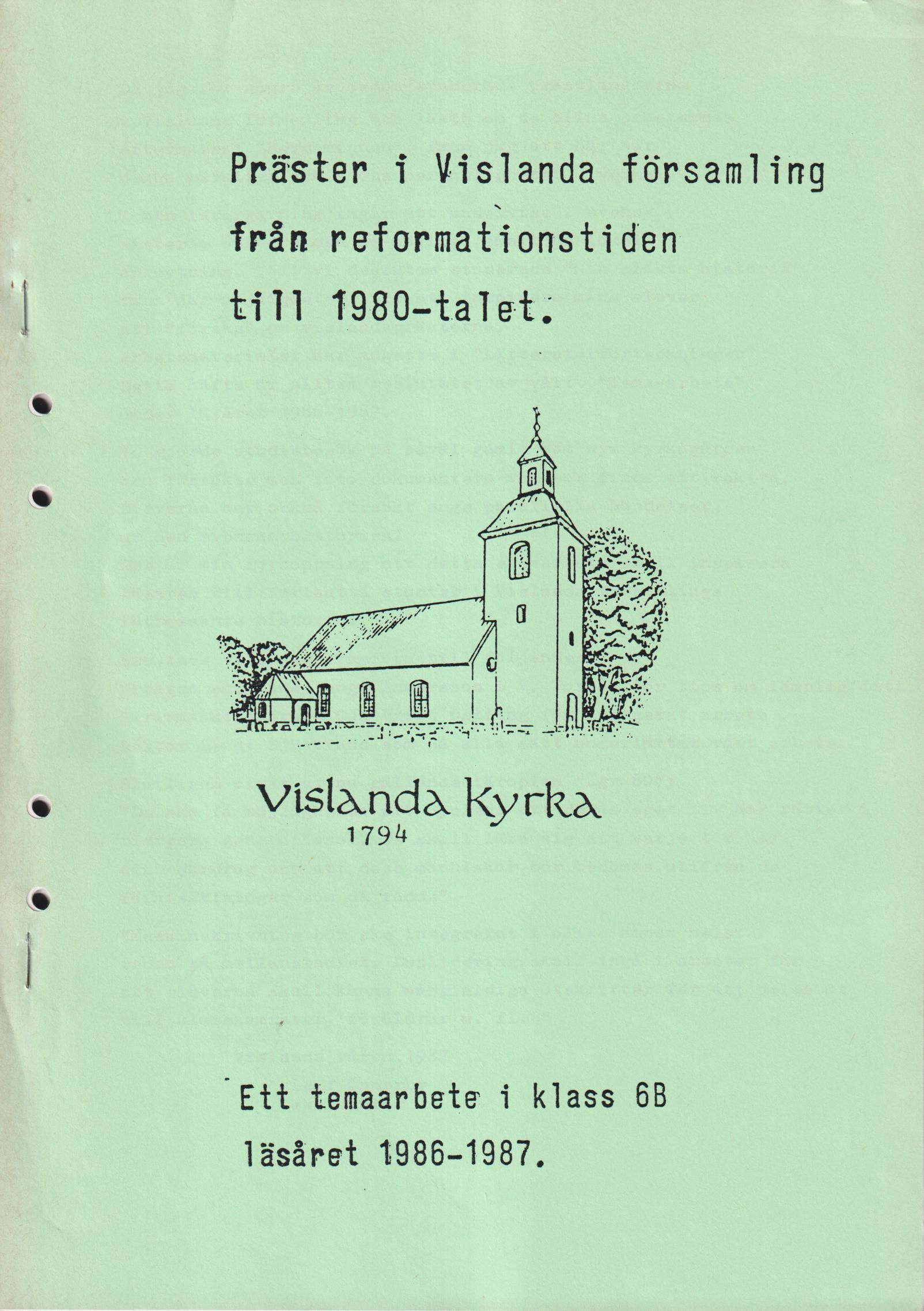 Präster i Vislanda församling från reformationstiden till 1980-talet. Ett temaarbete i klass 6B läsåret 1986-1987 [= omslagstitel].