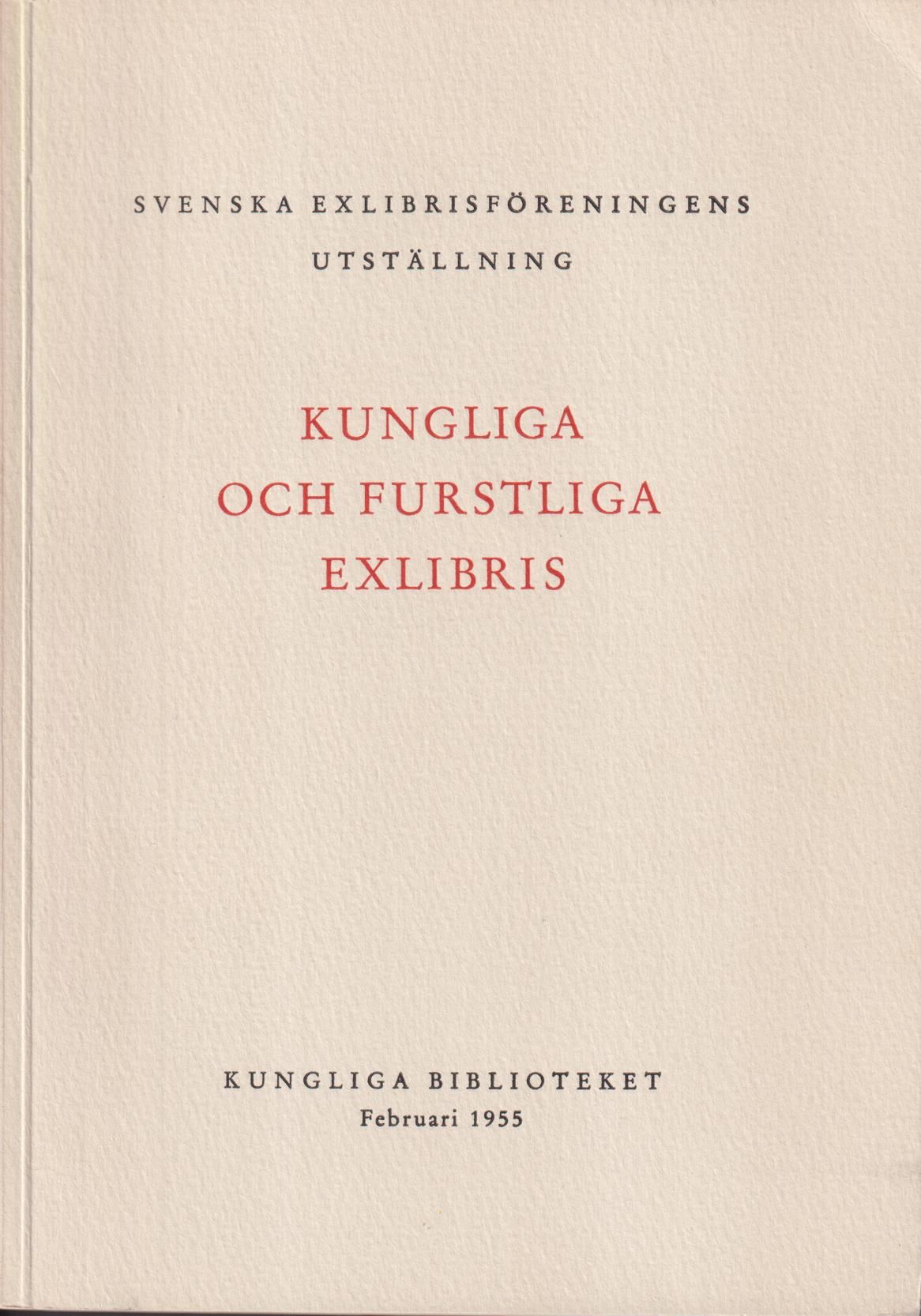Kungliga och furstliga exlibris. Kungliga biblioteket 1955. Svenska exlibrisföreningens utställning. Katalog upprättad av Arvid Berghman.