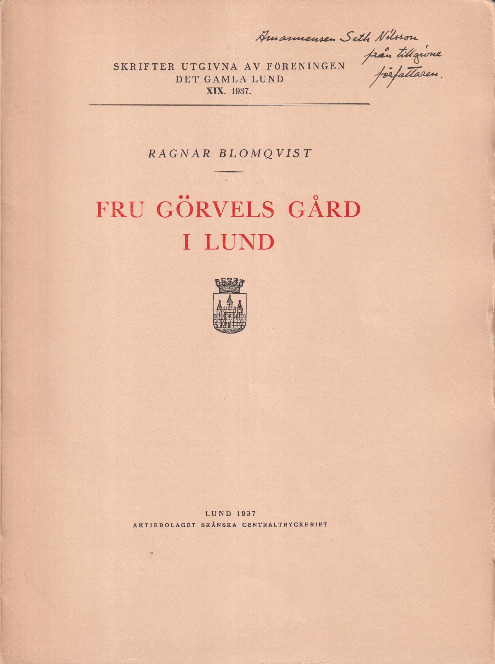 Fru Görvels gård i Lund. [Utg. av] Föreningen Det Gamla Lund.