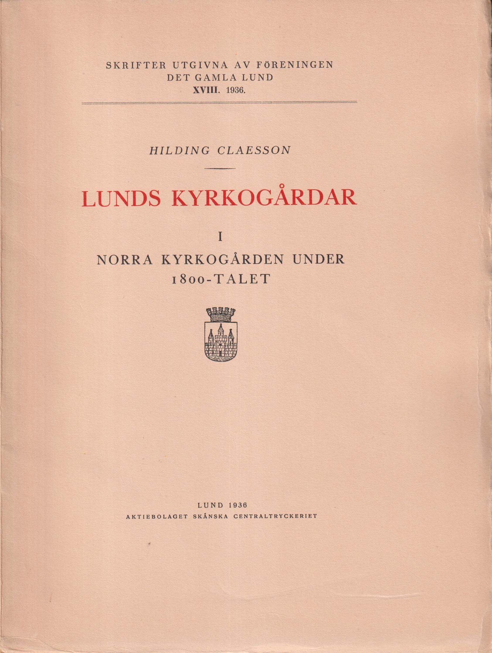 Skrifter utgivna av Föreningen Det gamla Lund 18 (1936). Innehåll: Lunds äldre kyrkogårdar; Kyrkogårdarna flyttas ut från städerna; Anläggningen av Norra Kyrkogården förberedes; Norra Kyrkogården inviges; Norra Kyrkogården under åren 1817-1830; Ny kyrkogård eller utvidgning av den Norra (Perioden 1825-1870); Norra Kyrkogården 1871-1890; Kyrkogårdsutvidgningarna under de senaste 50 åren; Källskrifter och litteraturförteckning; Efterskrift.