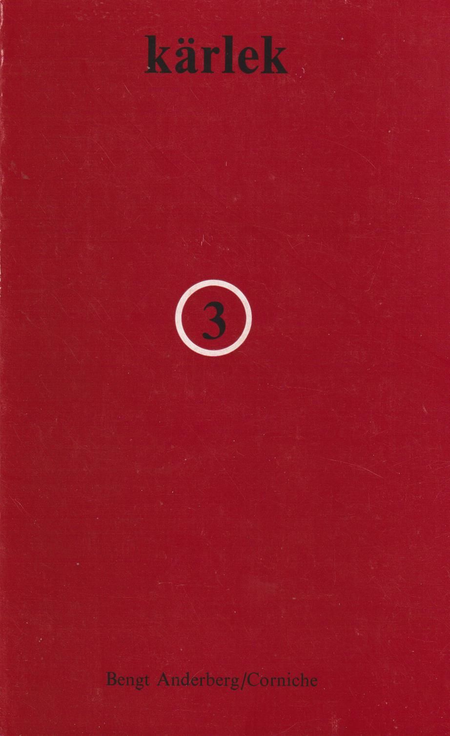 Första upplagan. Bengt Anderbergs serie Kärlek utkom i 14 delar under åren 1965-1970. Innehåll: Förord, av Rune Olausson; Ferieskolan, av Eva Berggrén; Länge - hela livet, av Göran Tunström; Syrenbädden, av Loka Enmark; Knuts karriär eller Tre farliga F: Förbindelser, Förvåning och Framgång, av Rune Olausson; Historien om den feta flickan, av Kjell Sundberg; I Knallebygd, av Lars Ardelius; Étrange couleur, av Carl Henrik Svenstedt; Fittebarn, av Svante Foerster.