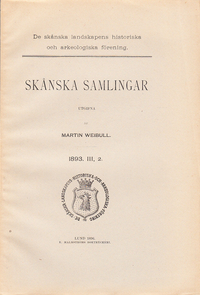 Lund, Wallin & Dalholm, 1999. 8:o. 124, (2) s. Illustrerad. Trådhäftad i styvt tryckt illustrerat pappersomslag. Välhållet oläst (?) exemplar. Illustrerad historia. Innehåll: Den skånska runforskningens historia; Runstensseden; Att läsa en vikingatida runsten; Runlära; Skånes vikingatida runstenar; Namn som förekommer på skånska vikingatida runstenar; Ordförrådet på de skånska vikingatida runstenarna; Runstensregister; Alfabetiskt runstensregister; Litteraturlista.