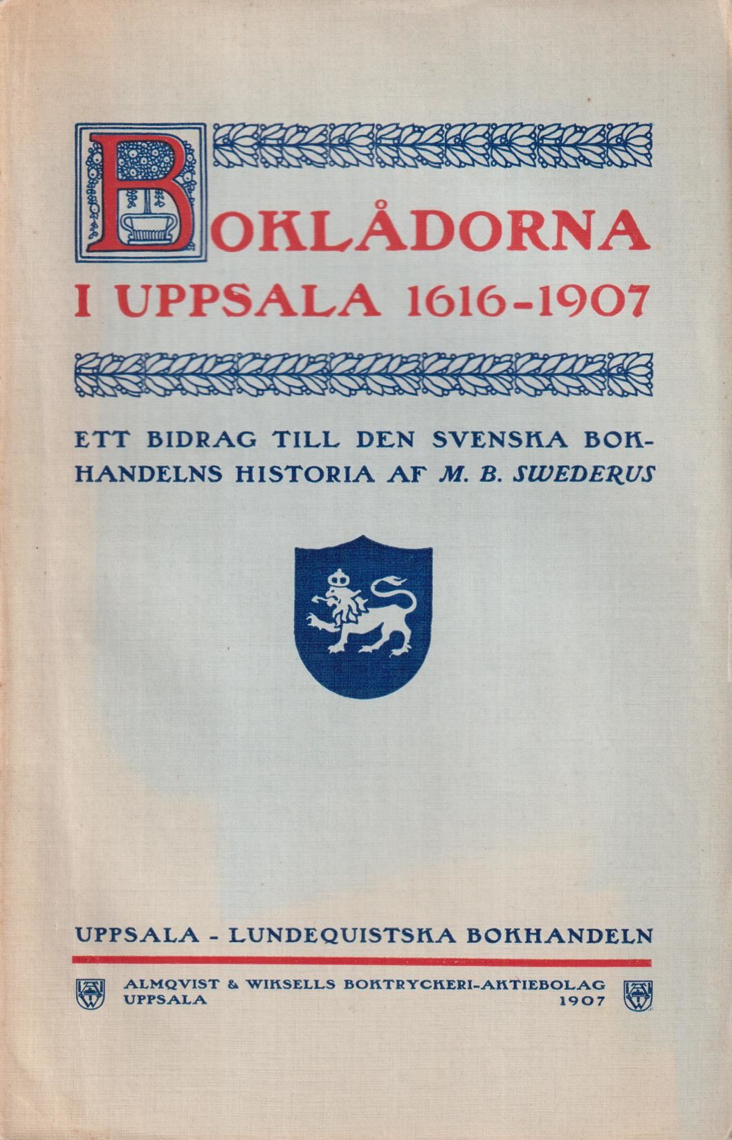 Boklådorna i Uppsala 1616-1907. Ett bidrag till den svenska bokhandelns historia af M.B. Swederus. [Utg. av] Lundequistska Bokhandeln.