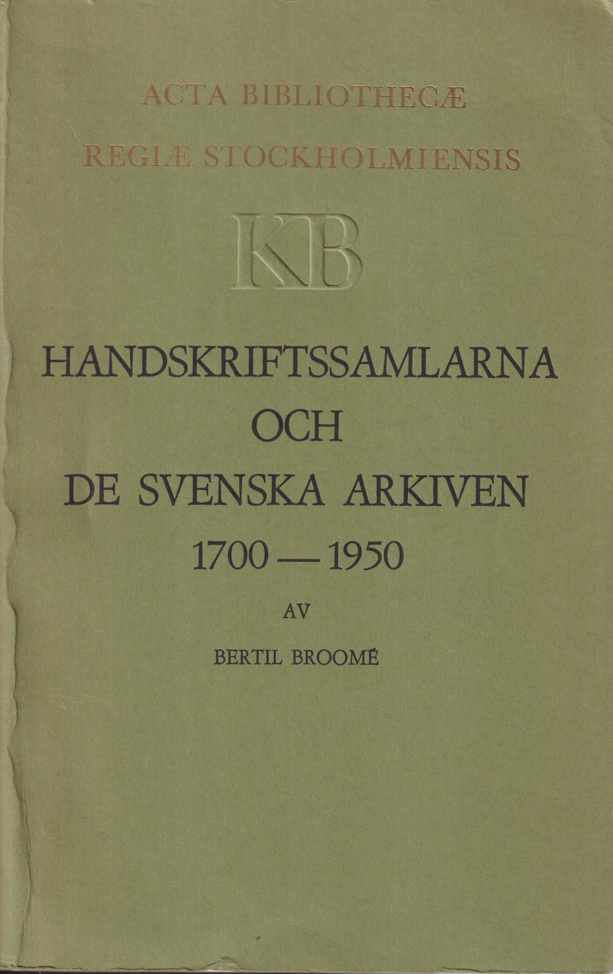 Handskriftssamlarna och de svenska arkiven 1700-1950. With an English summary.