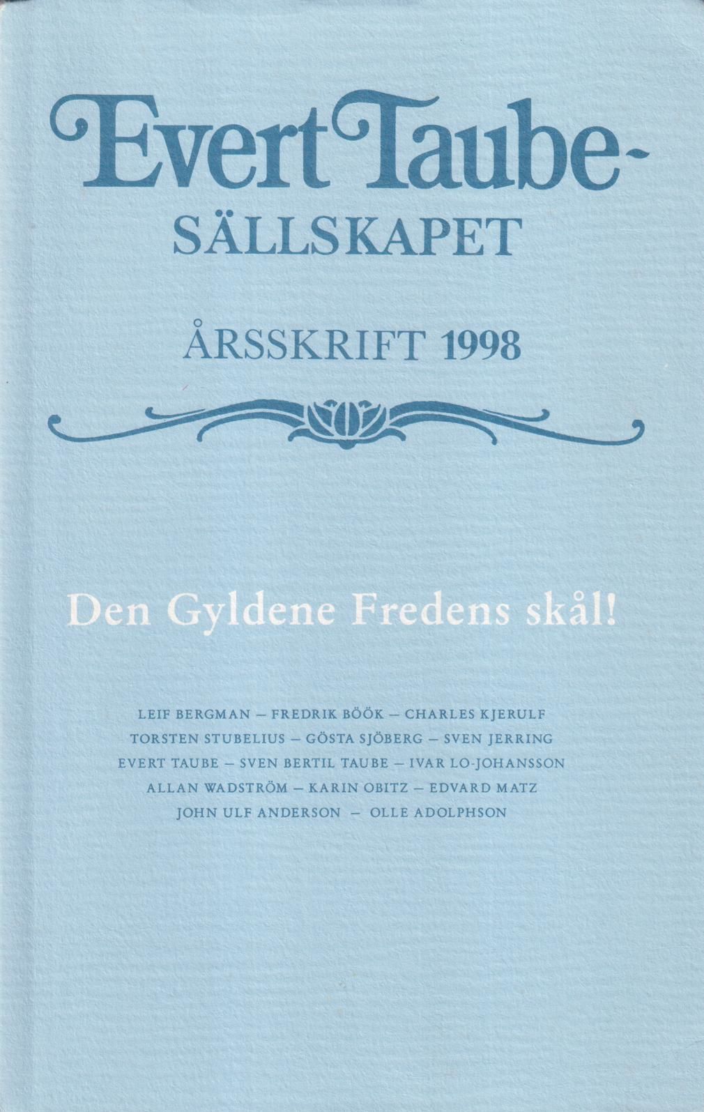 Evert Taube-sällskapet. Årsskrift 1998. Den Gyldene Fredens skål! Texter om Taube och Freden sammanställda.