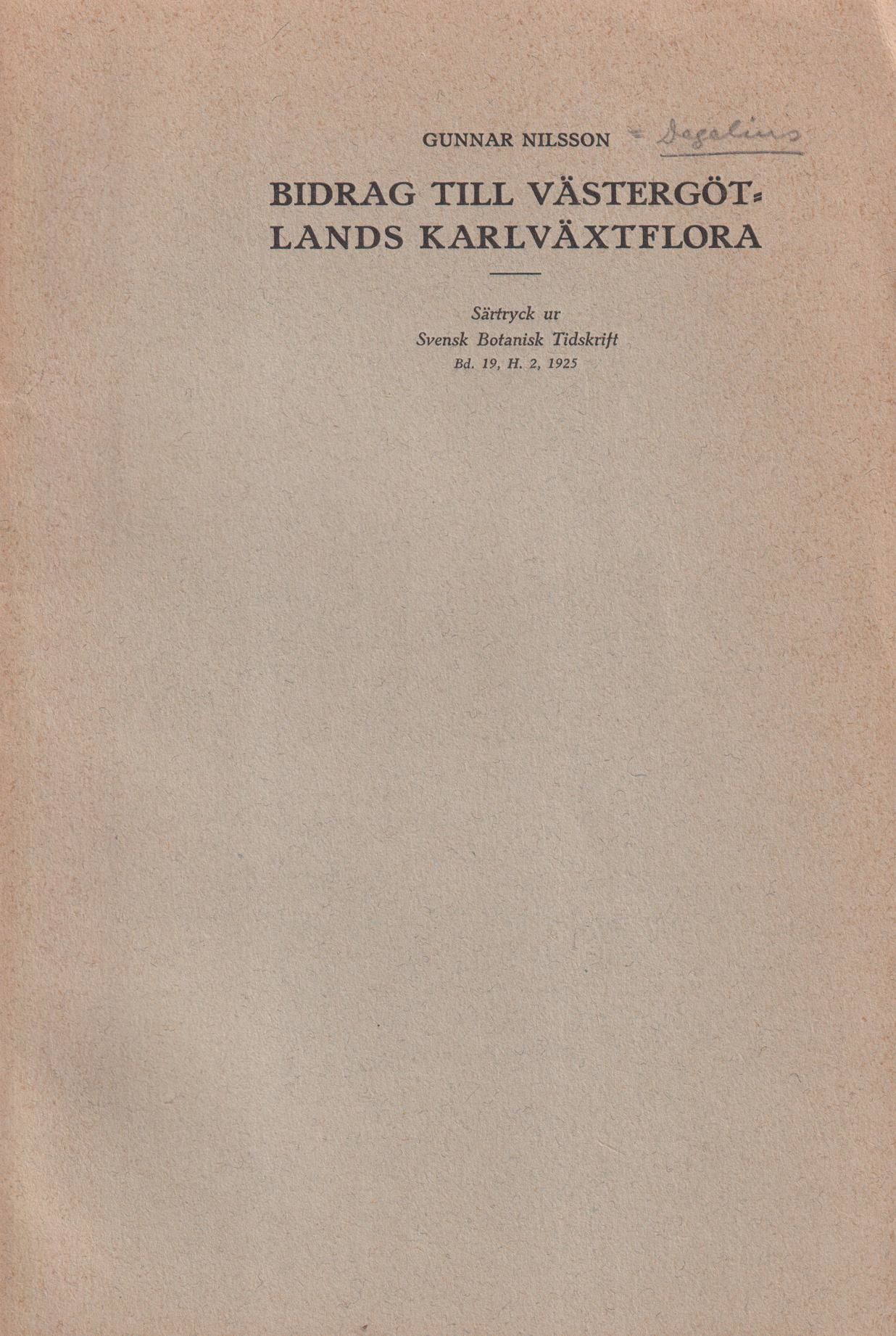 Bidrag till Västergötlands kärlväxtflora, av Gunnar Nilsson [= rubrik].