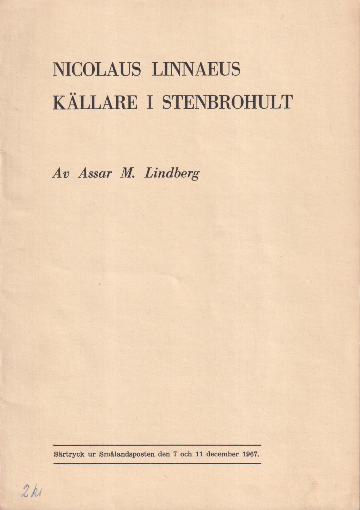 Nicolaus Linnaeus källare i Stenbrohult [= rubrik].