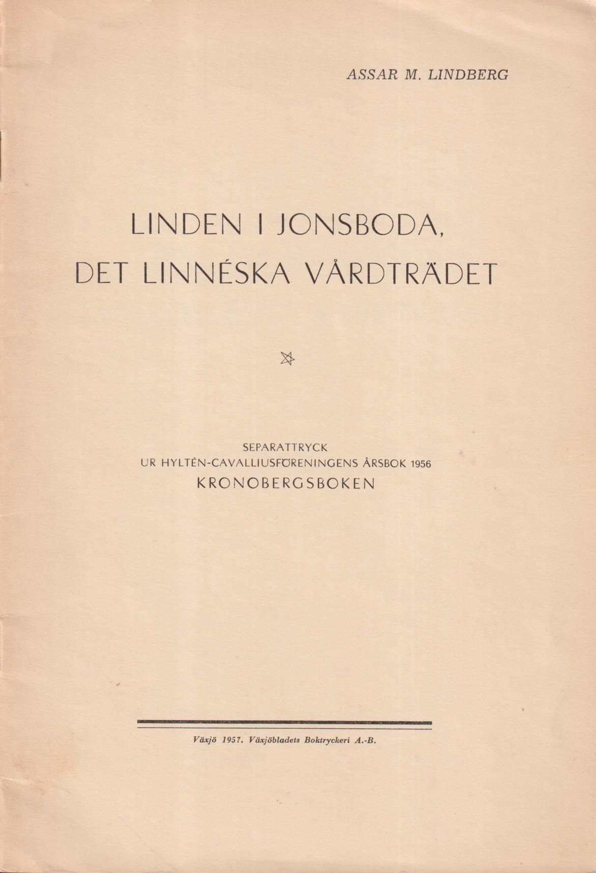 Särtryck ur ‘Hyltén-Cavalliusföreningens årsbok 1956. Kronobergsboken’. Med släkttavlor i slutet ‘Bärare av släktnamnen Lindelius, Tiliander och Linnæus’.