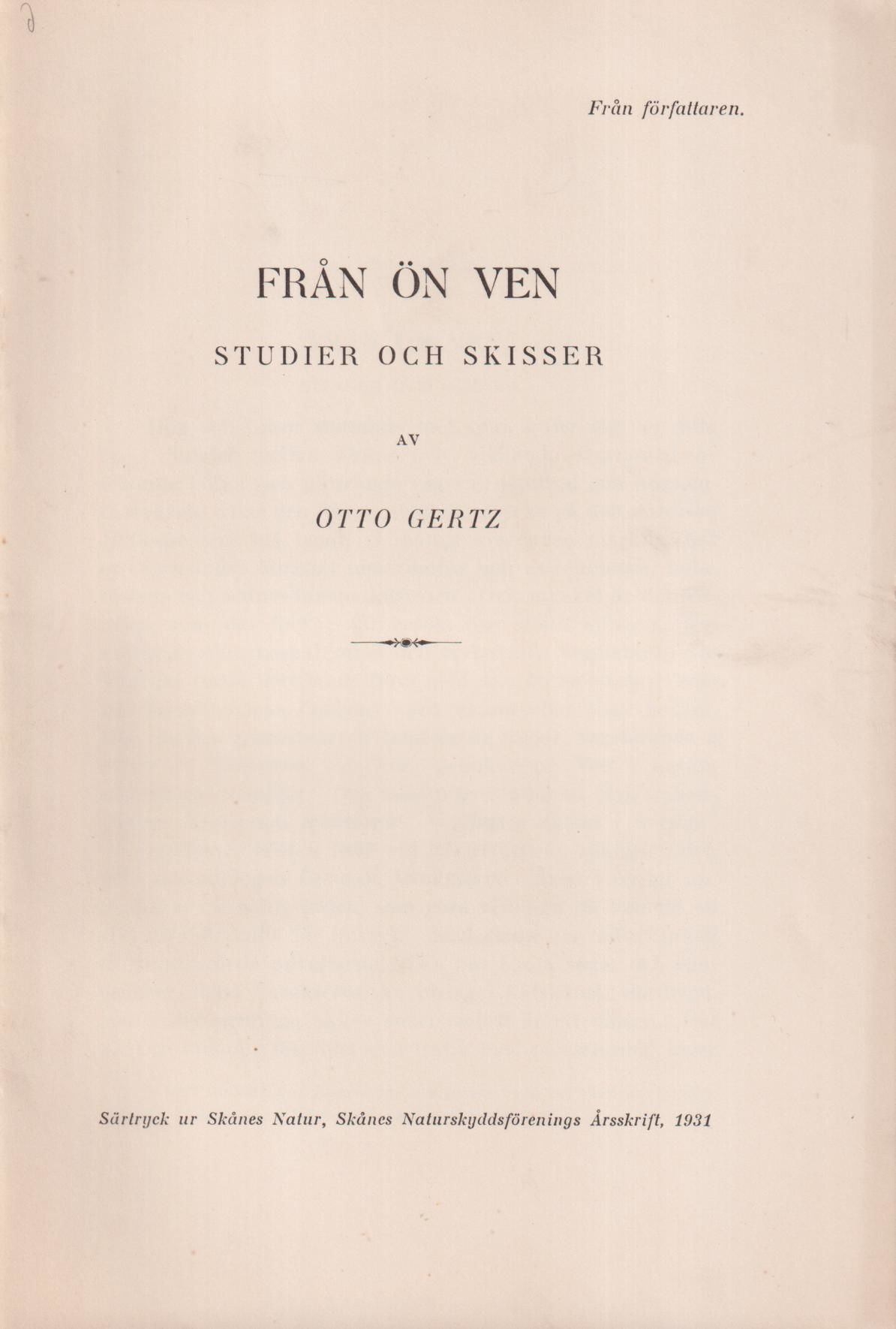Från ön Ven. Studier och skisser [= omslagstitel].