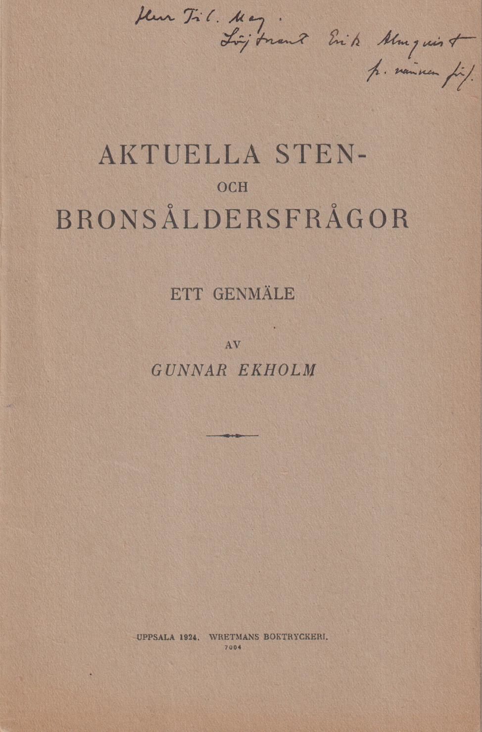 Aktuella sten- och bronsåldersfrågor. Ett genmäle.