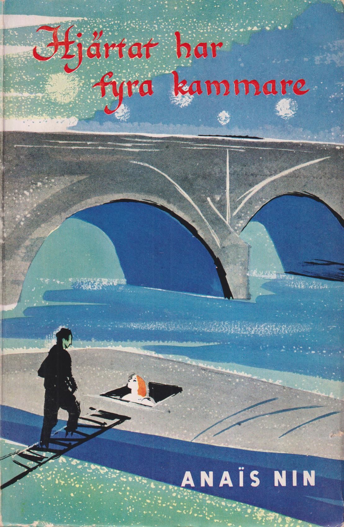 Första svenska upplagan. Omslag av Ingrid Rosell-Lindahl. Originalets titel ‘The four-chambered heart’.