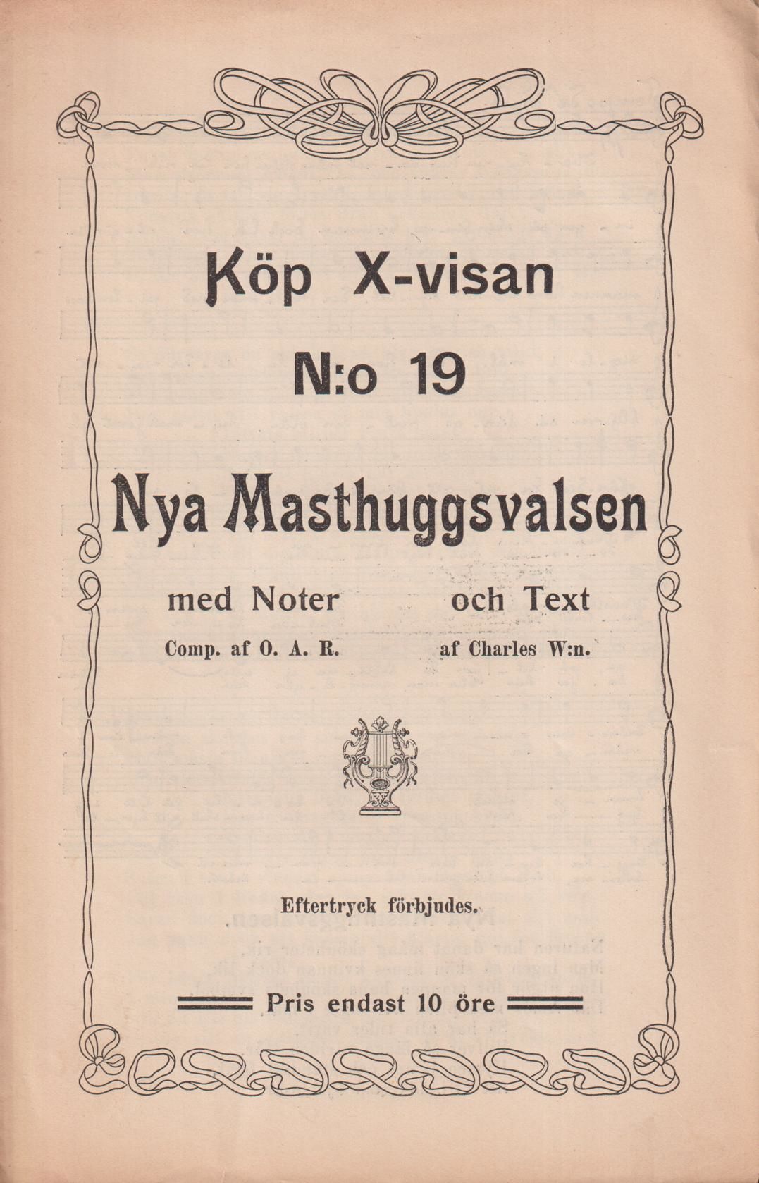 Köp X-visan N:o 19. Nya Masthuggsvalsen med Noter (Comp. af O.A.R.) och Text (af Charles W:n).