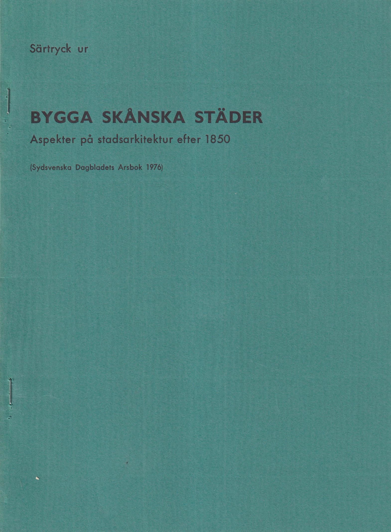 Särtryck ur ‘Bygga skånska städer. Aspekter på stadsarkitektur efter 1850’ (Sydsvenska Dagbladets årsbok 1976).