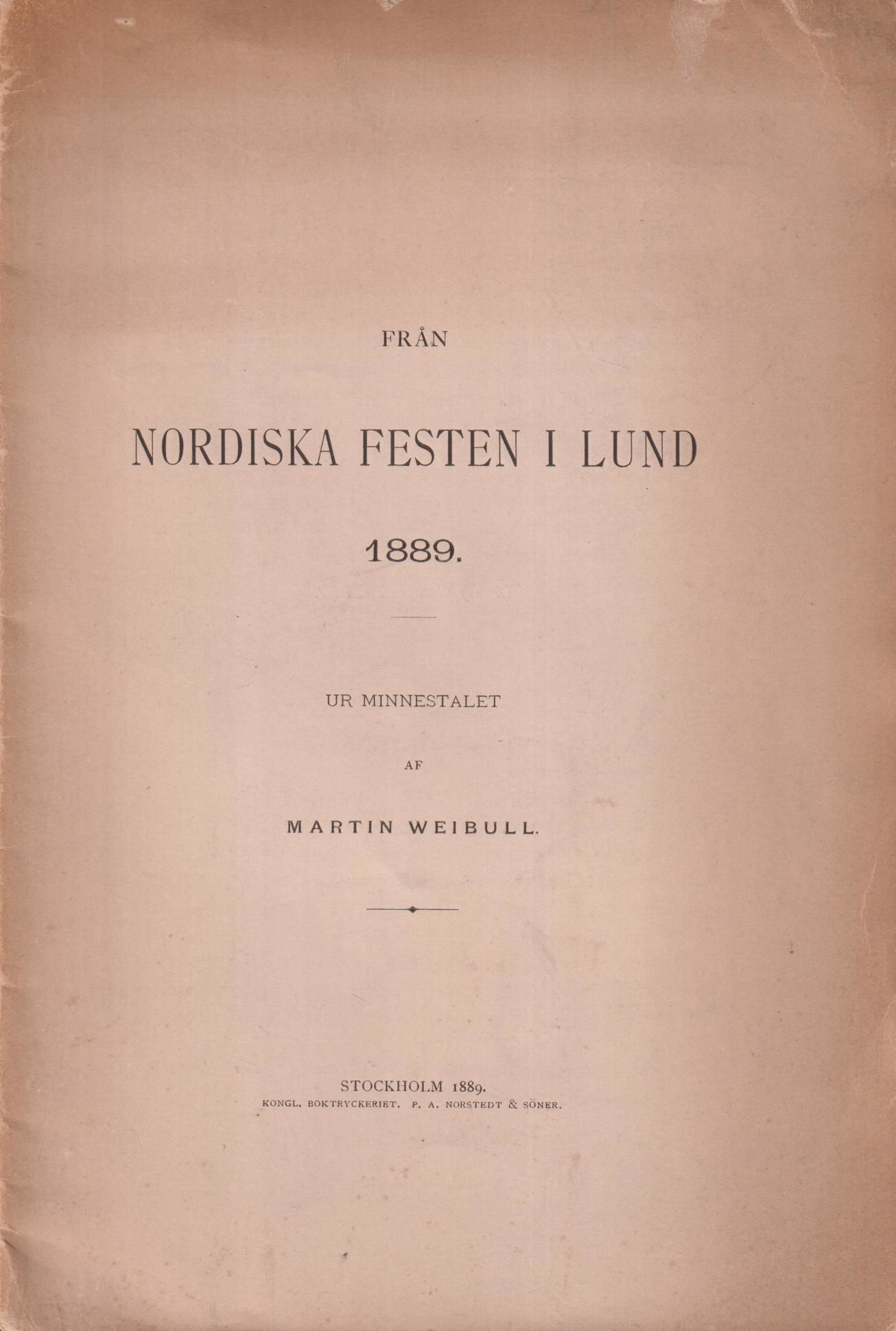 Från nordiska festen i Lund 1889. Ur minnestalet af Martin Weibull.