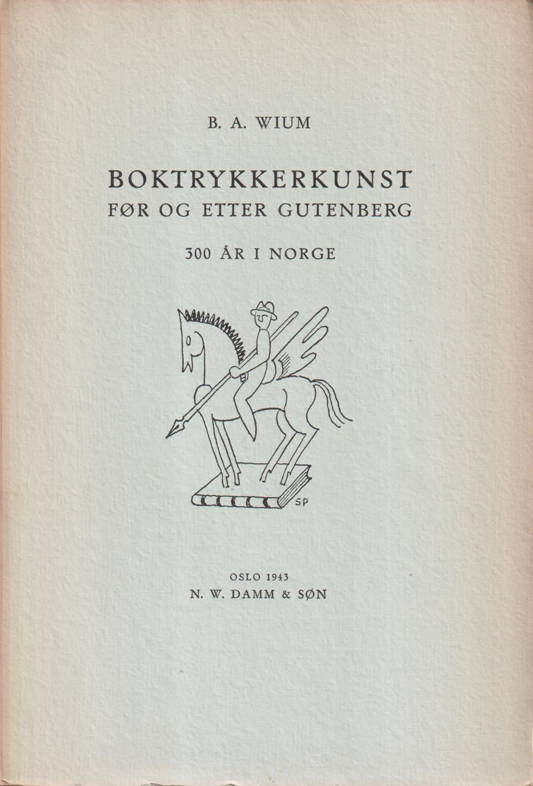 Boktrykkerkunst før og etter Gutenberg. 300 år i Norge. [Utg. av] N.W. Damm & Søn.