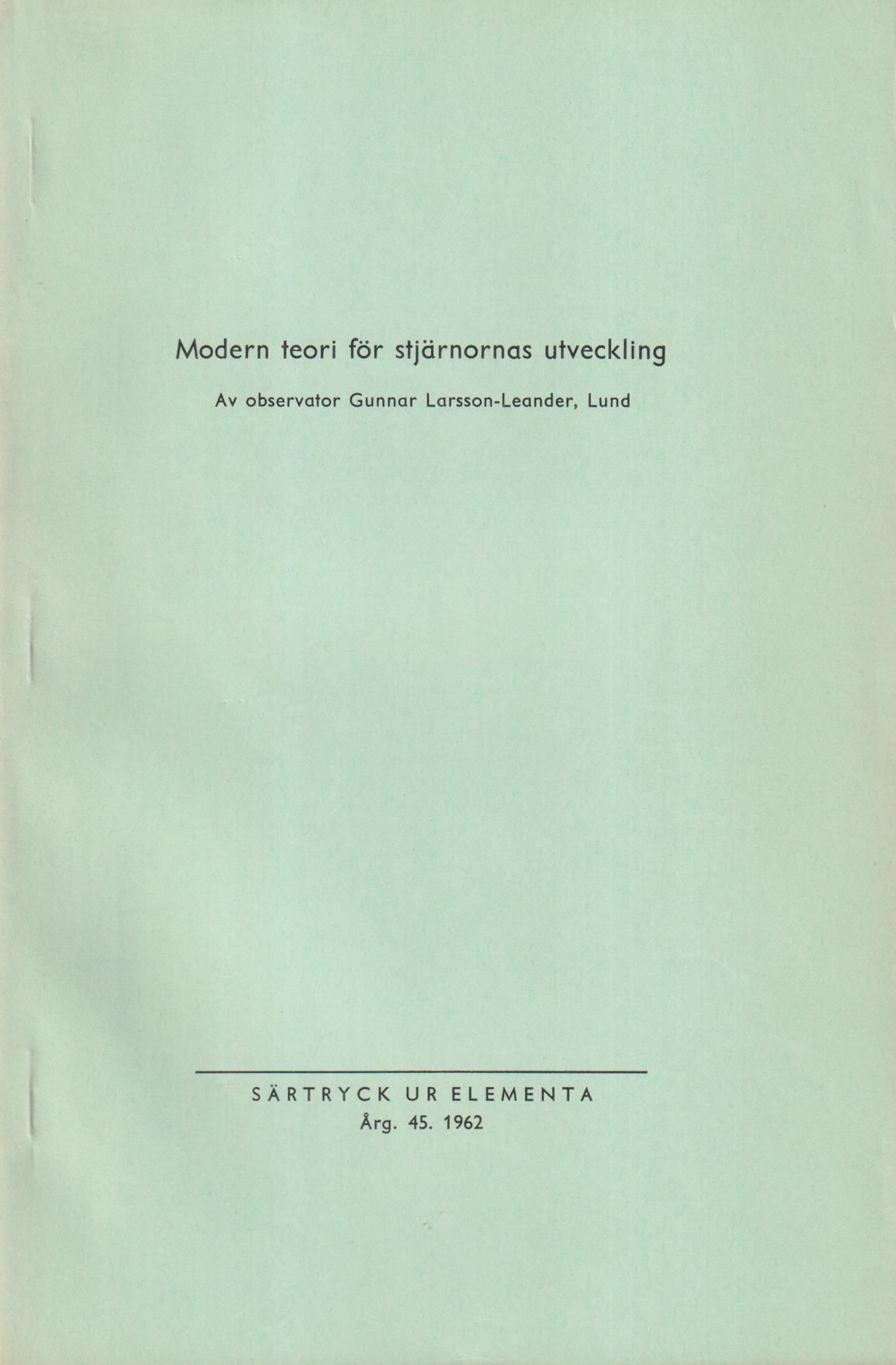 Lund, Håkan Ohlssons Boktryckeri, 1961. 4:o. s. 3-19. Klammerhäftad med styvt tryckt ljusgrönt pappersomslag. Välhållet exemplar. Ur astronom Gunnar Larsson-Leanders bibliotek.