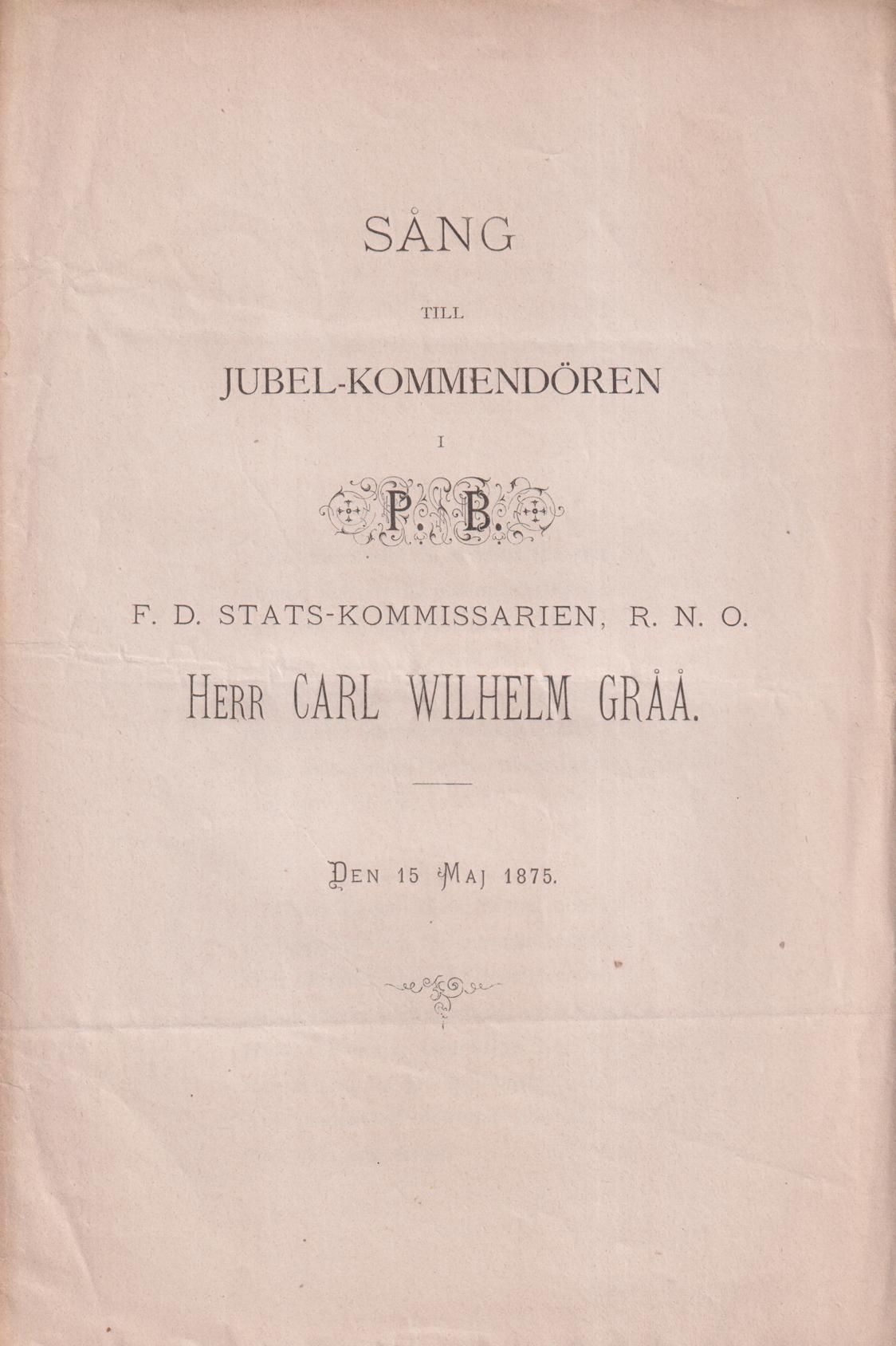 Sång till jubel-kommendören i P.B. F.d. stats-kommissarien, R.N.O. herr Carl Wilhelm Gråå. Den 15 maj 1875.