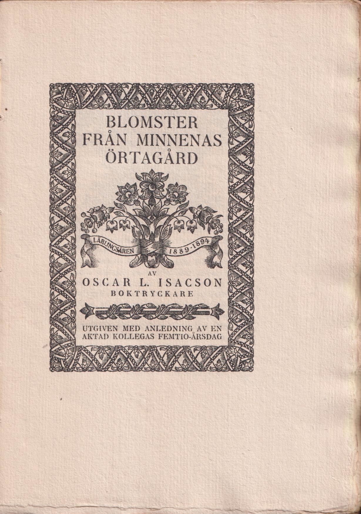 Blomster från minnenas örtagård. Lärlingsåren 1889-1894. Utgiven med anledning av en aktad kollegas femtio-årsdag.