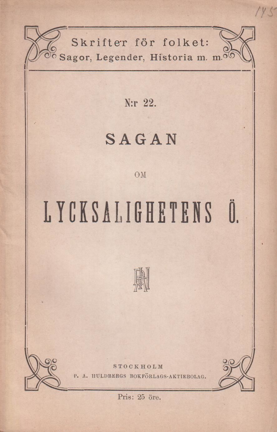 Sagan om lycksalighetens ö. [Utg. av] P.A. Huldbergs Bokförlags-aktiebolag.