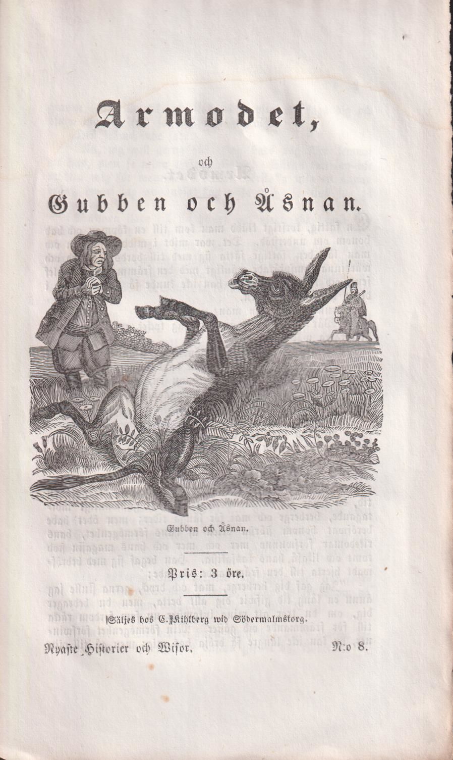 Armodet och Gubben och Åsnan. Säljes hos G. Kihlberg wid Södermalmstorg.