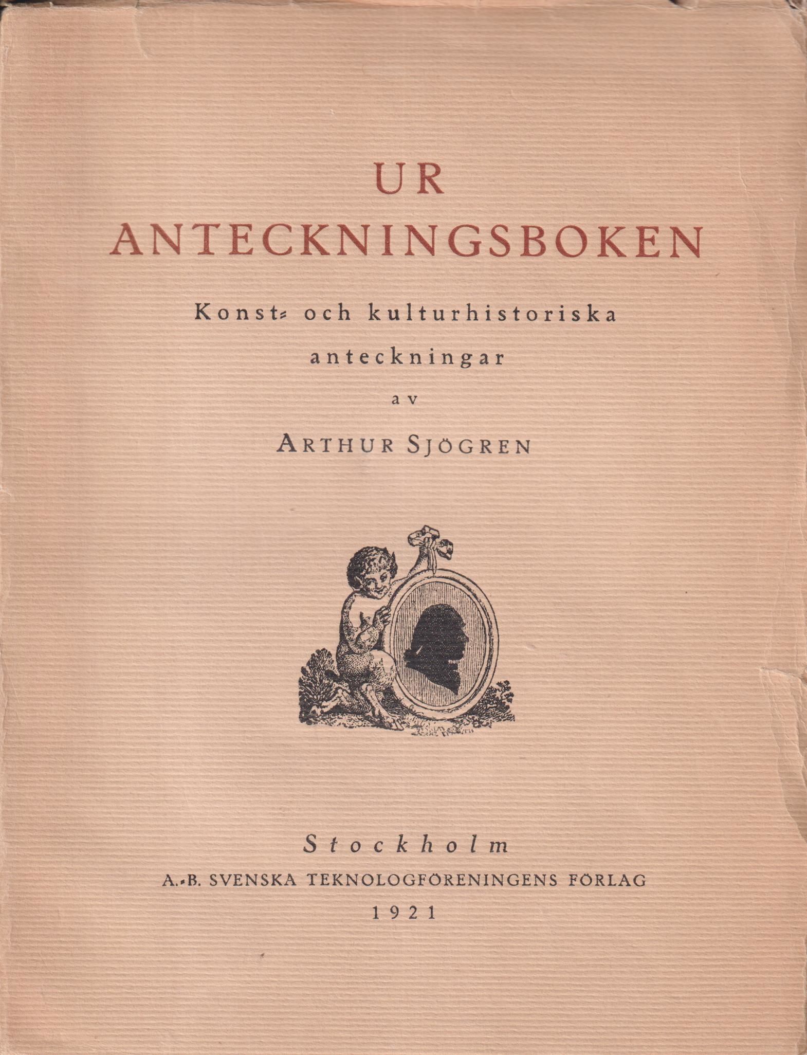 Ur anteckningsboken I. Konst- och kulturhistoriska anteckningar. [Utg. av] A.-B. Svenska Teknologföreningens förlag.