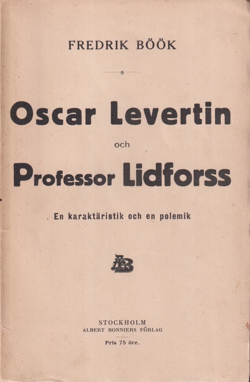 Oscar Levertin och professor Lidforss. En karaktäristik och en polemik af Fredrik Böök. [Utg. av] Albert Bonniers förlag.