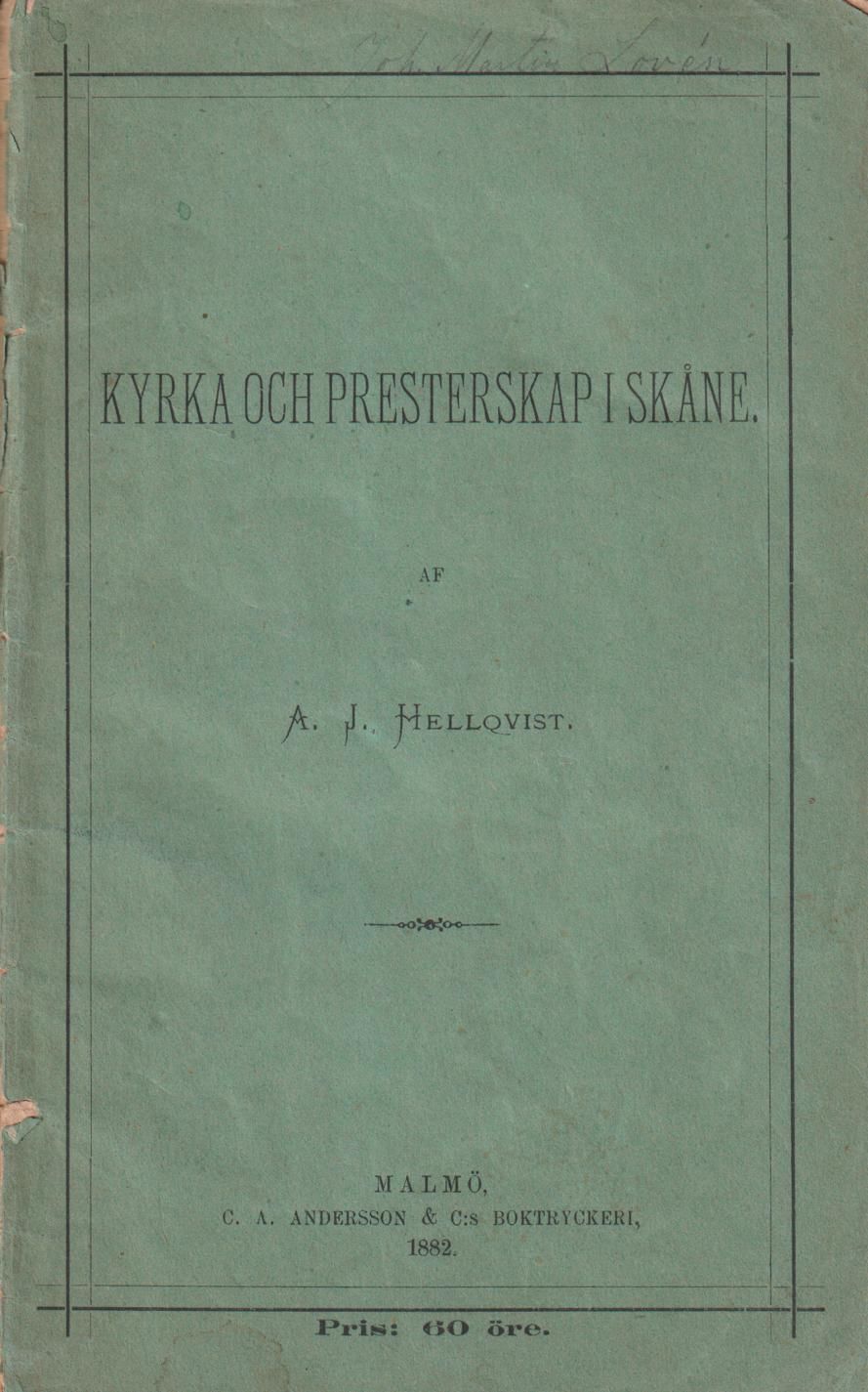 Kyrka och presterskap i Skåne af A.J. Hellqvist.