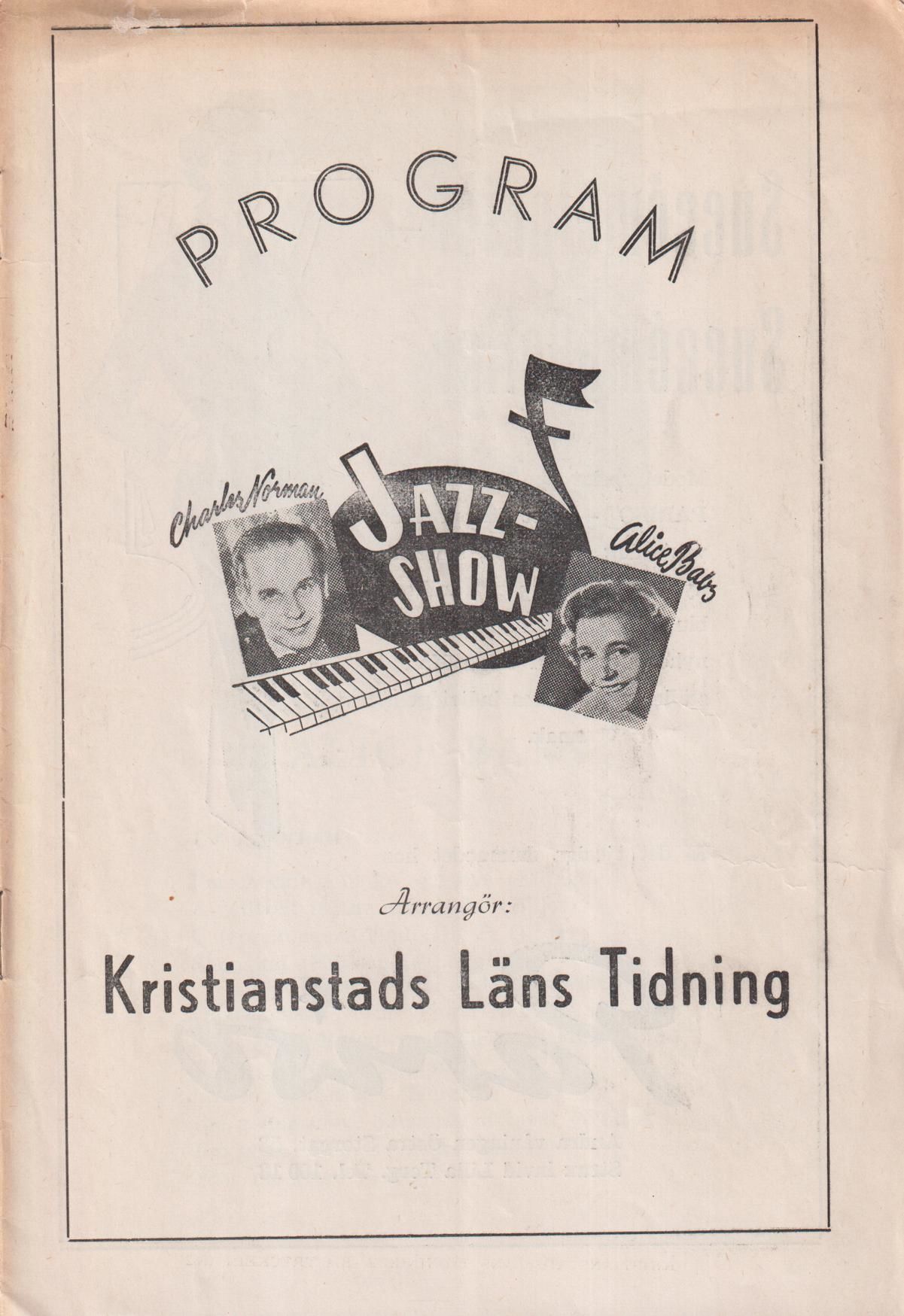 Jazz-show [med] Charles Norman & Alice Babs. Arrangör: Kristiandstads Läns Tidning.